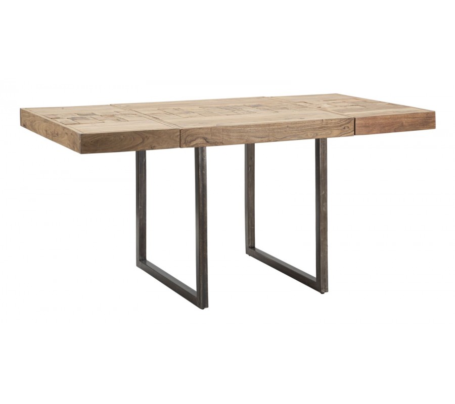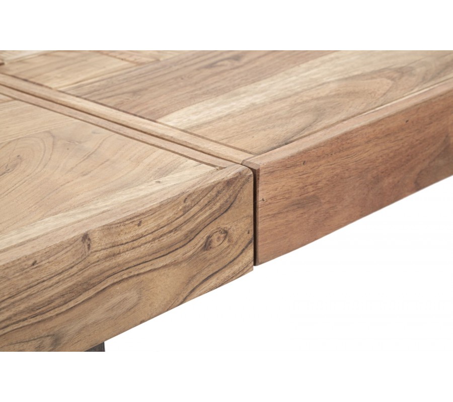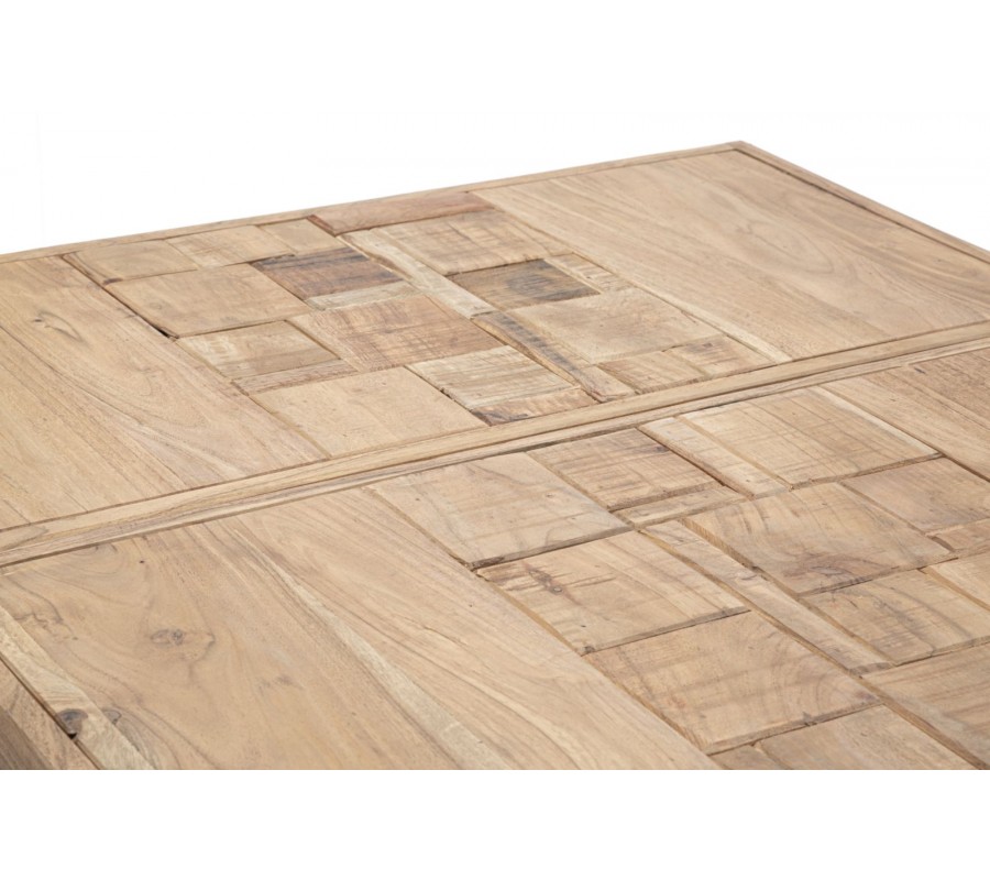 Jedálenský stôl Cubilio je vyrobený z masívneho akáciového dreva v teplej hnedej farbe s prirodzenou kresbou dreva. Hlavným vizuálnym prvkom je mozaikový vzor na stredovej časti stolovej dosky, ktorý dodáva stolu jedinečný a sofistikovaný vzhľad. Obdĺžnikový tvar poskytuje dostatok priestoru na komfortné stolovanie.