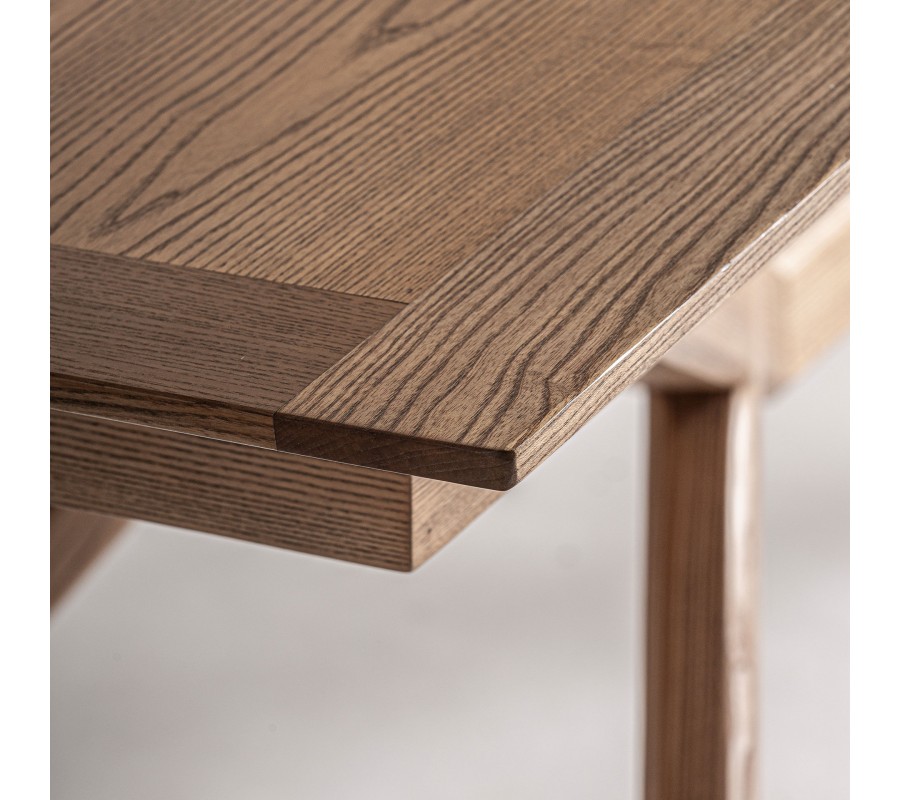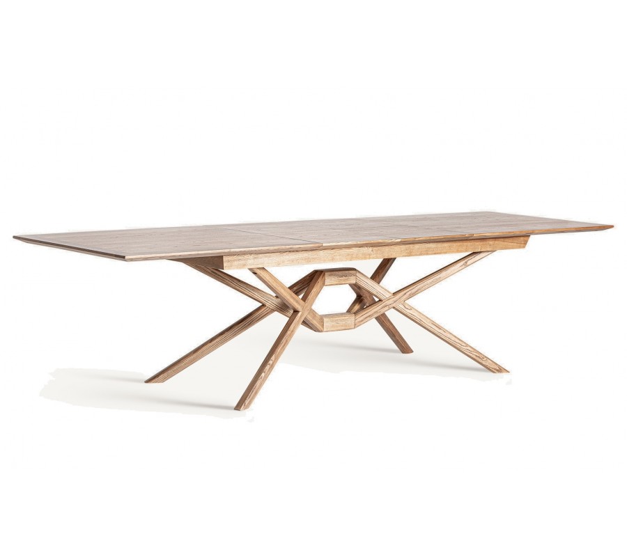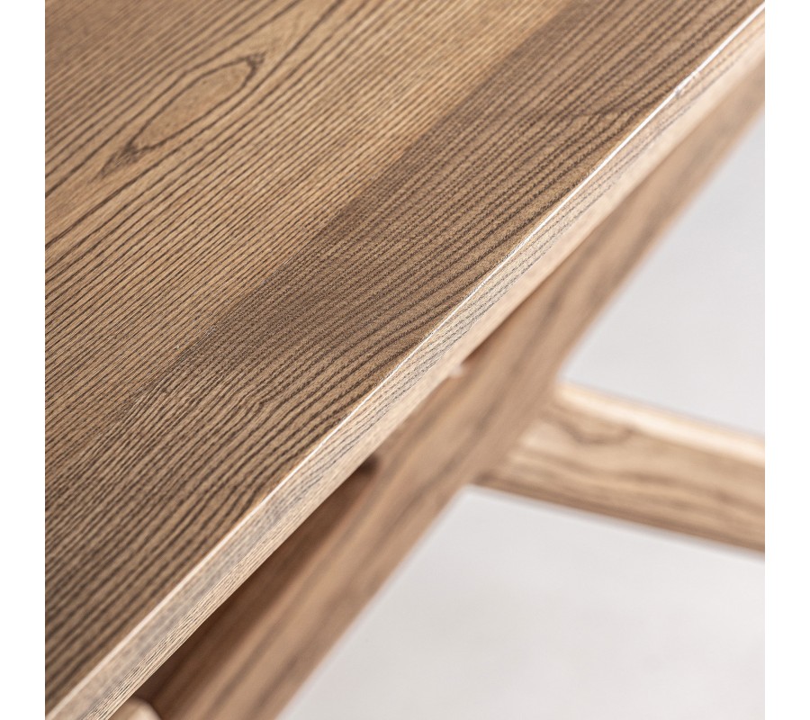 Luxusný jedálenský stôl Pira v art deco štýle je exkluzívnym dizajnovým kúskom, ktorý spája precízne spracovanie masívneho jaseňového dreva s originálnou konštrukciou. Obdĺžniková doska v hnedej farbe ponúka nielen prírodný vzhľad s viditeľnou kresbou dreva, ale aj praktickú rozkladaciu funkciu, ktorá umožňuje jednoduché zväčšenie stolovacej plochy.