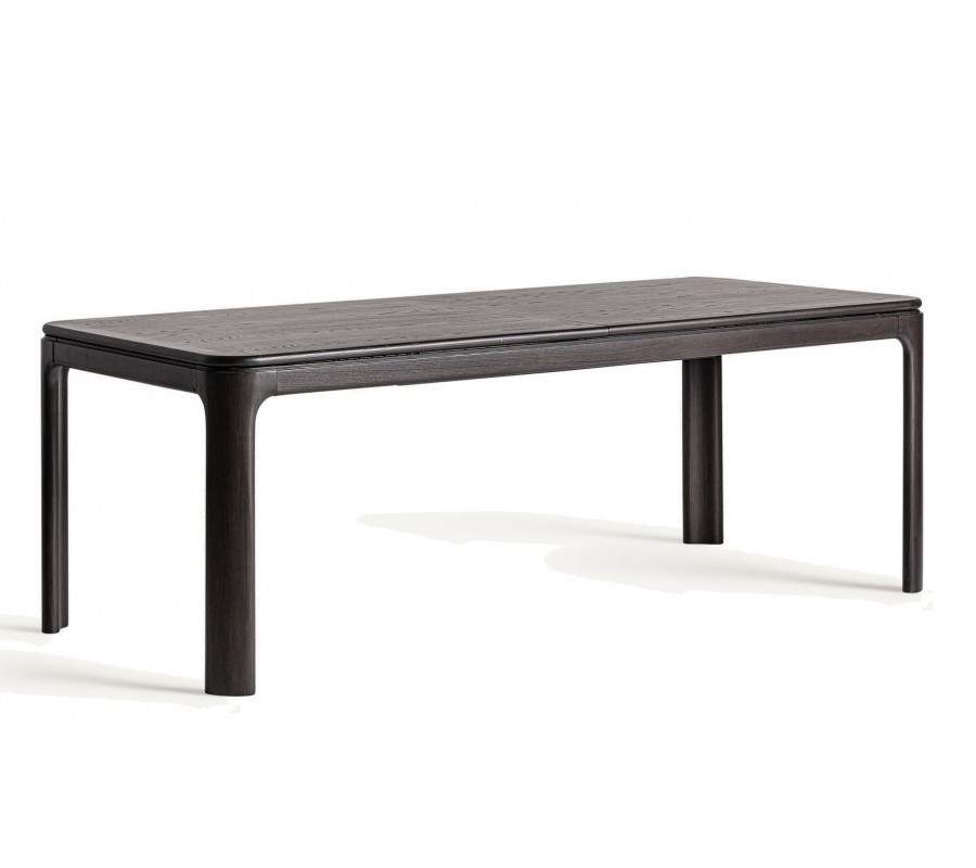 Luxusný moderný jedálenský stôl Kolin v čiernej farbe spája nadčasový dizajn s precíznym remeselným spracovaním. Vyrobený z masívneho jaseňového a kaučukového dreva, vyniká svojím obdĺžnikovým tvarom s oblými rohmi a jemne oblúkovými nožičkami, ktoré dodávajú celku harmonický vzhľad. Moderný charakter dopĺňa rozkladacia funkcia, vďaka ktorej sa dá stôl jednoducho zväčšiť a prispôsobiť potrebám väčšieho stolovania.