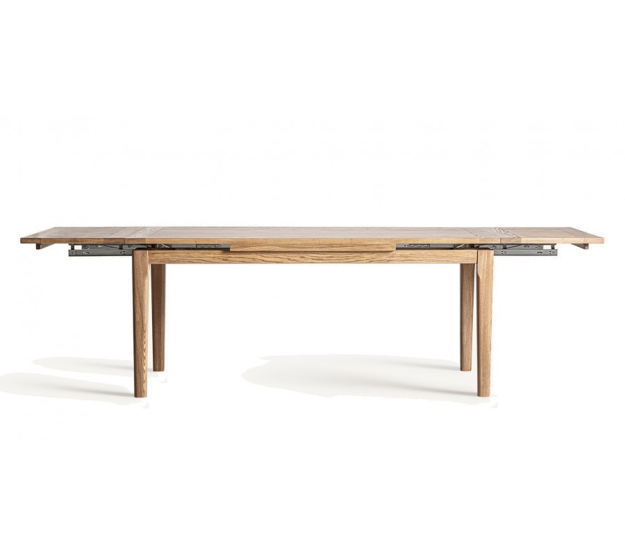 Luxusný rozkladací jedálenský stôl Kolin je dokonalou kombináciou škandinávskeho dizajnu s moderným nádychom. Vyrobený z masívneho jaseňového dreva v prírodnej hnedej farbe, vyniká svojou nadčasovou eleganciou a precíznym spracovaním. Obdĺžnikový tvar a jemne zužujúce sa nožičky, ktoré smerom nadol pôsobia subtílne a vyvážene, dodávajú stolu ľahkosť a sofistikovanosť.