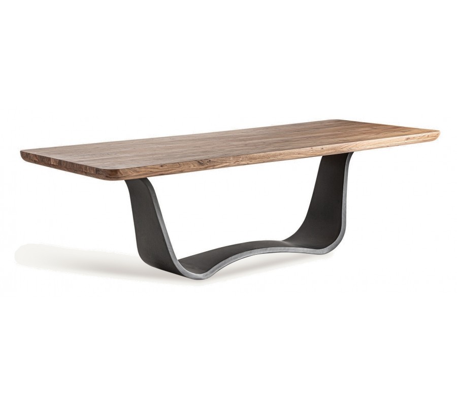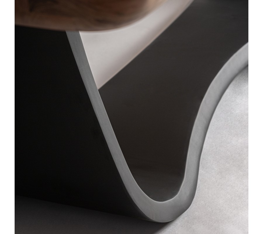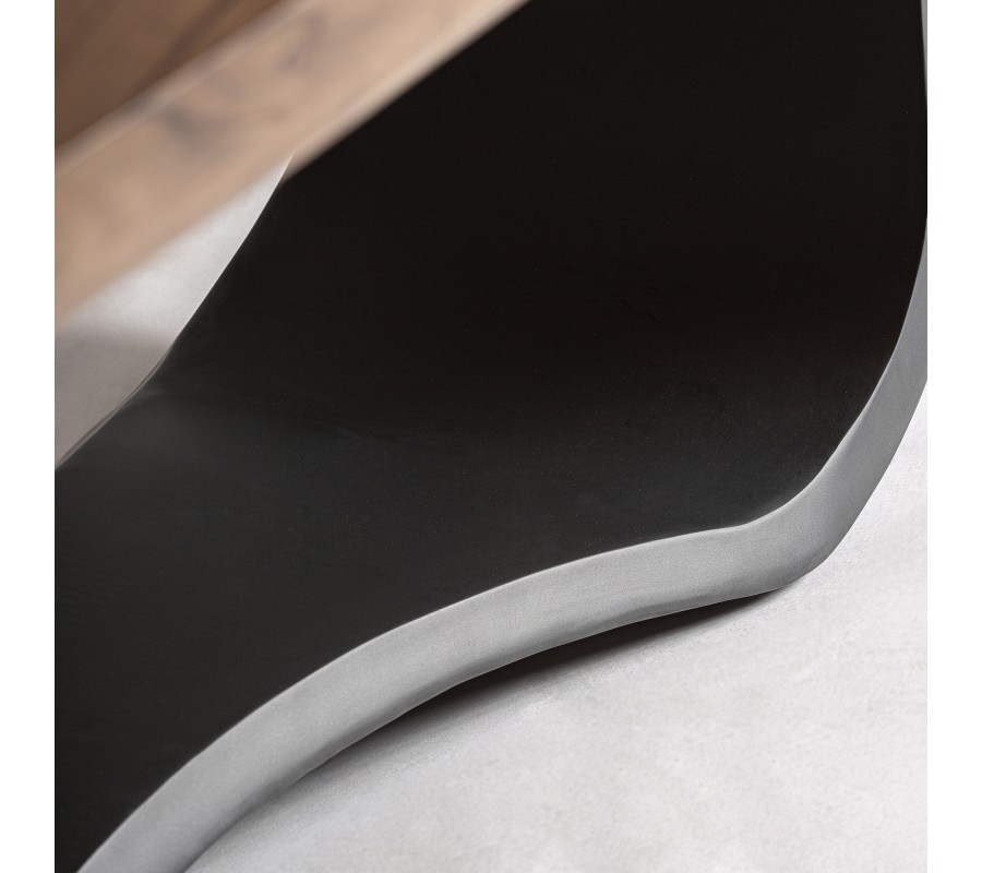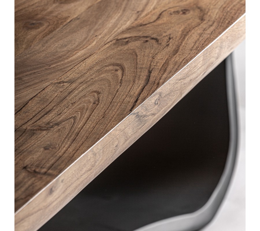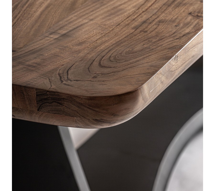 Luxusný koloniálny jedálenský stôl Jordyn vyniká svojím atypickým dizajnom, ktorý spája prírodné materiály s výraznou sochárskou formou. Vrchná doska z masívneho akáciového dreva má jemne organický obdĺžnikový tvar a vyniká prirodzenou kresbou s výraznou štruktúrou letokruhov v teplej hnedej farbe. Dominantným prvkom je čierna kovová noha v matnom prevedení, ktorá svojím vlnitým tvarom s dvomi oblúkmi pripomína široké W. Táto netradičná konštrukcia pôsobí ľahko, no zároveň dodáva stabilitu a robí z tohto stola výrazný stredobod každého interiéru.