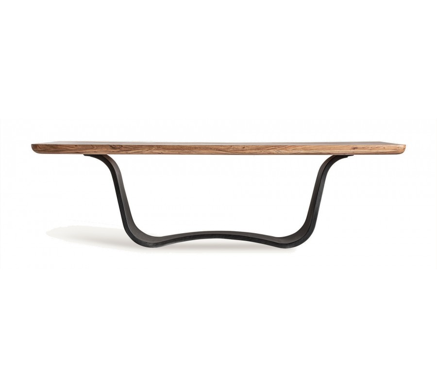 Luxusný koloniálny atypický masívny obdĺžnikový jedálenský stôl Jordyn s kovovou čiernou vlnitou nohou 260 cm