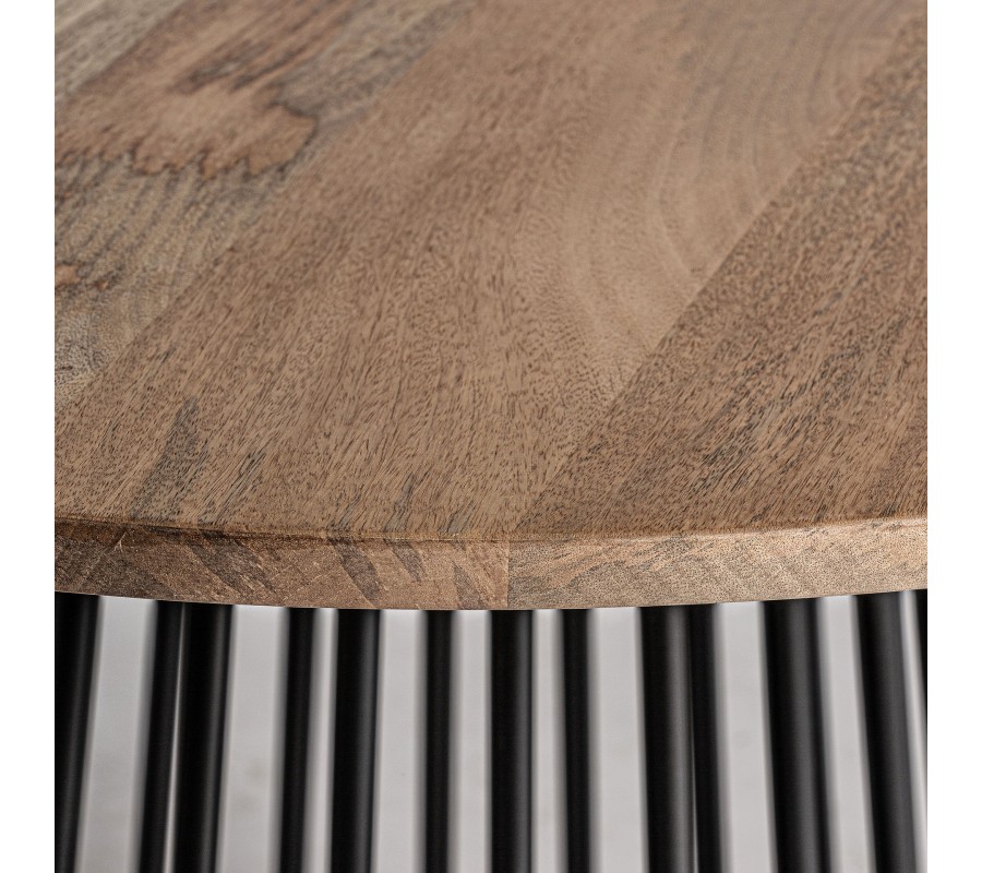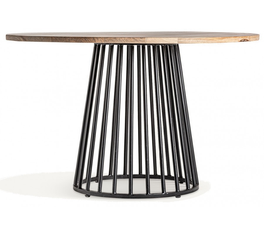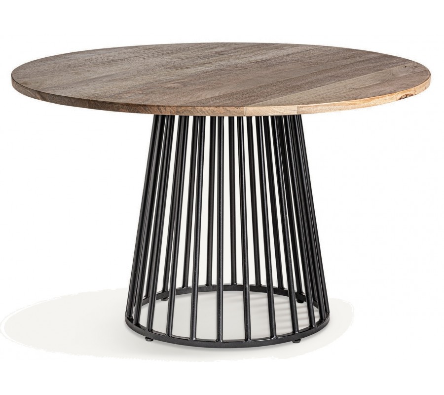 Tento stôl je ideálny pre koloniálne, rustikálne a industriálne interiéry, kde vynikne jeho remeselné spracovanie a kontrast medzi prírodným drevom a kovom. Skvele sa kombinuje s koženými alebo čalúnenými stoličkami, prvkami v čiernej, hnedej alebo béžovej farbe a dekoráciami z kovu, ratanu či keramiky. S priemerom 120 cm pohodlne usadí 4 osoby.