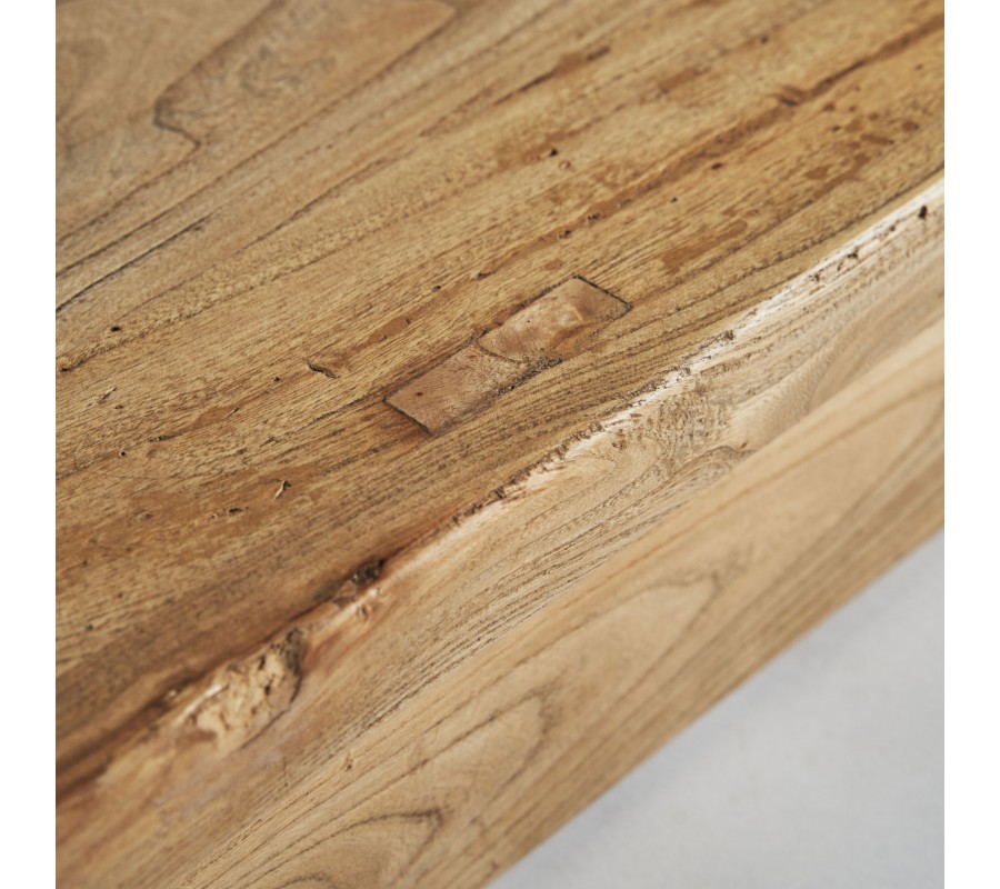 Luxusný koloniálny rozkladací jedálenský stôl Masera zaujme na prvý pohľad svojím obdĺžnikovým tvarom, výraznou štruktúrou letokruhov a precíznym remeselným spracovaním masívneho brestového dreva v prírodnej hnedej farbe. Robustná konštrukcia je navrhnutá pre stabilitu aj eleganciu, v strede sa nachádza kovová spojovacia tyč, ktorá spája dve tvarované nohy. Tieto nohy sú bohato vyrezávané do zaoblených a profilovaných línií, čím pripomínajú tradičné koloniálne a klasické stolárske techniky.