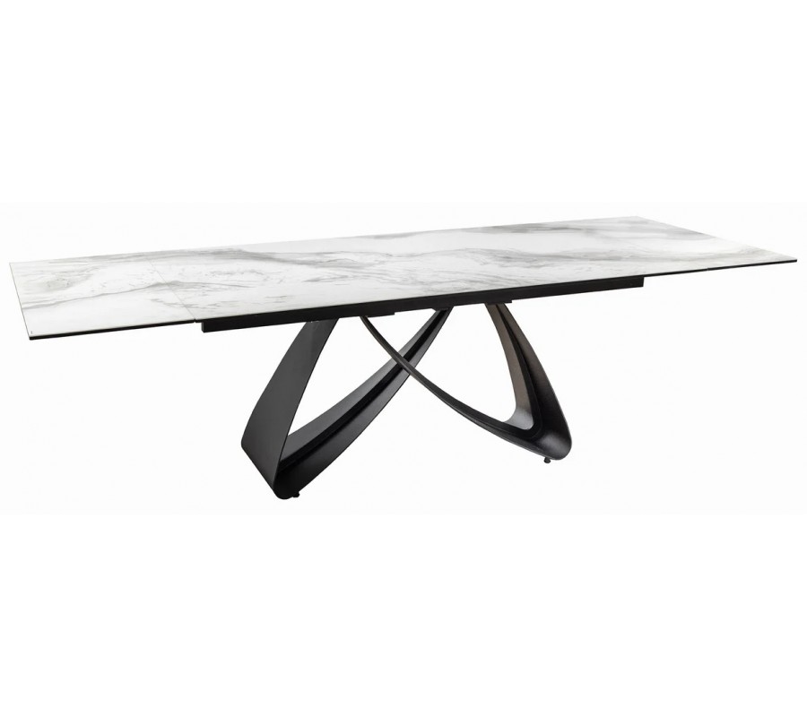 Luxusný dizajnový rozkladací jedálenský stôl Hoal predstavuje elegantný stredobod každej modernej jedálne či otvoreného obytného priestoru. Tento model má obdĺžnikový tvar s ostrými rohmi a vrchnú dosku v bielej farbe so sivými žilkami. Doska je vyrobená z keramiky a tvrdeného skla, čo jej dodáva odolnosť voči poškriabaniu, teplu a ľahké čistenie.