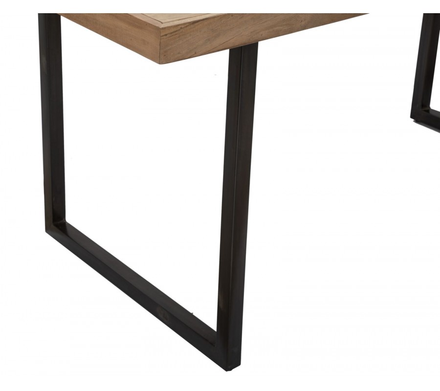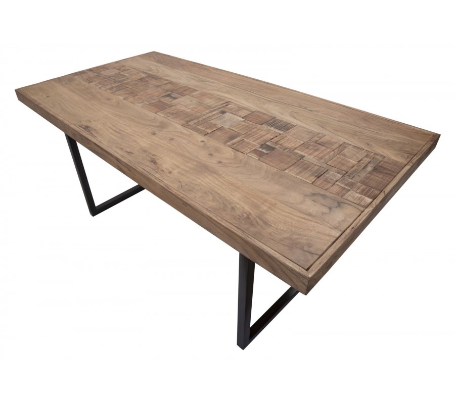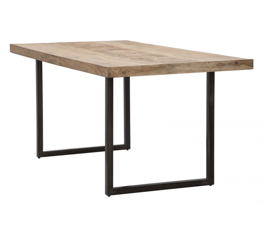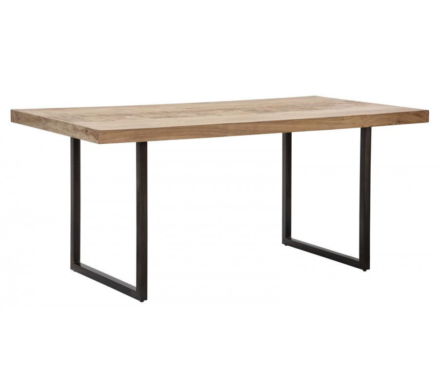 Dizajnový industriálny obdĺžnikový jedálenský stôl Cubilio zo svetlo hnedého akáciového dreva s čiernymi kovovými nohami 175 cm