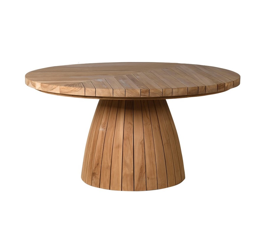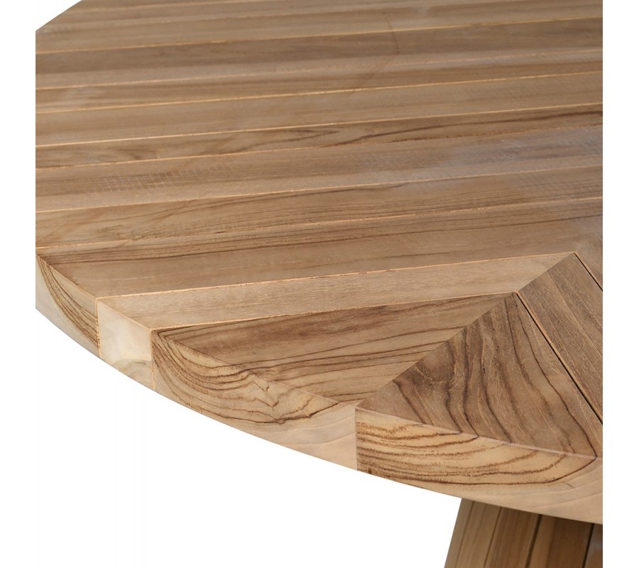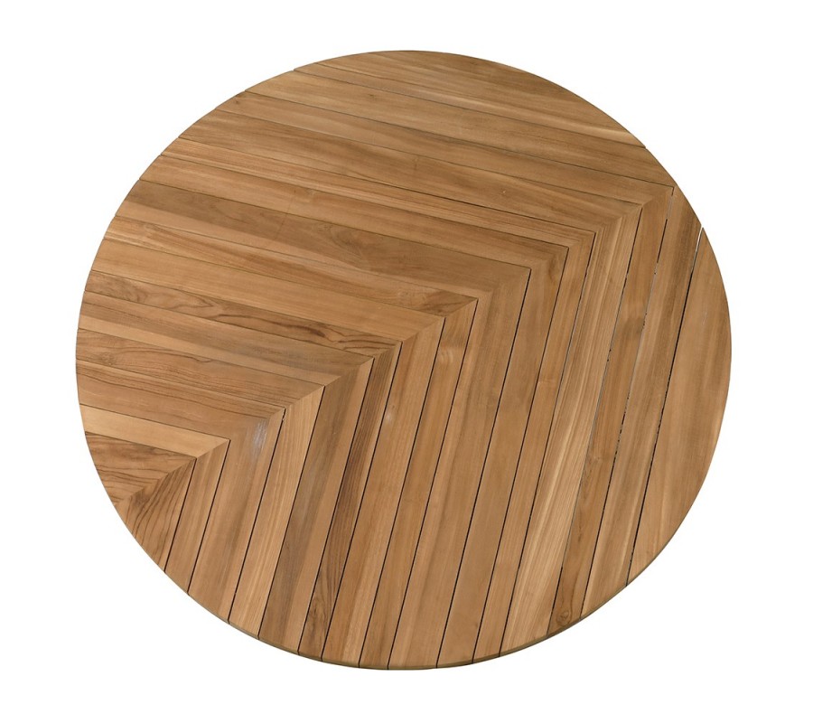 Luxusný vidiecky okrúhly jedálenský stôl Armand zo svetlého hnedého masívneho teakového dreva s parketovým dizajnom 150 cm