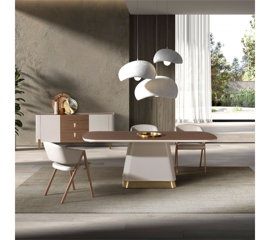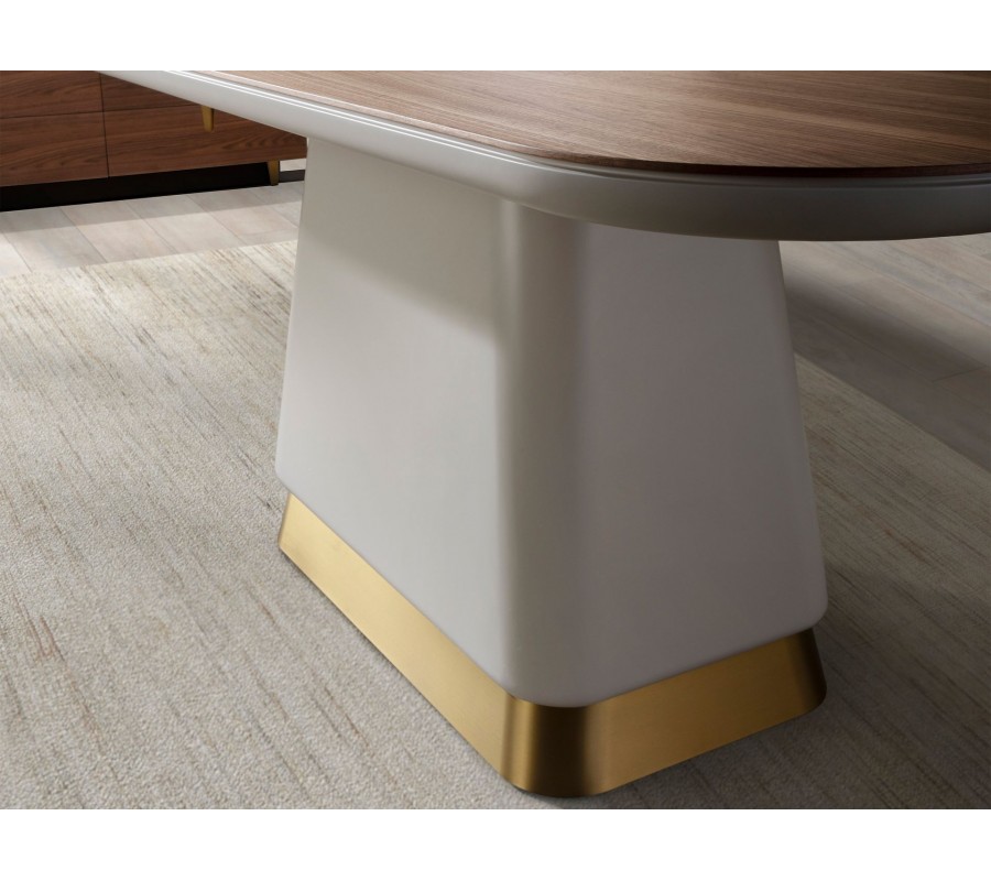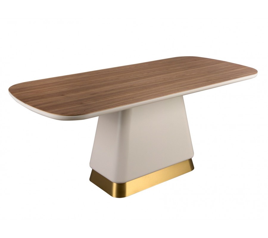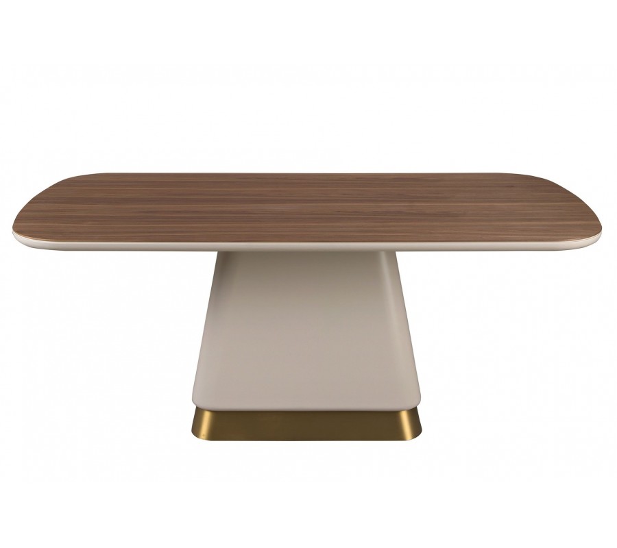 Luxusný art deco obdĺžnikový jedálenský stôl Forma Moderna s mohutnou béžovou nohou a orechovou hnedou drevenou doskou 200 cm
