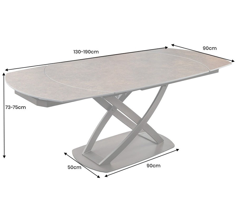 Stôl disponuje premysleným systémom rozkladania, ktorý umožňuje predĺženie z pôvodnej dĺžky 130 cm až na 190 cm. Pod hlavnou doskou sa skrývajú dve výsuvné časti, ktoré sa pomocou kovovej konštrukcie plynule vysunú a zaistia. Vďaka tomu je možné flexibilne prispôsobiť veľkosť stola počtu hostí – pri 130 cm pohodlne usadí 4 osoby, zatiaľ čo pri 190 cm až 6 až 8 osôb.