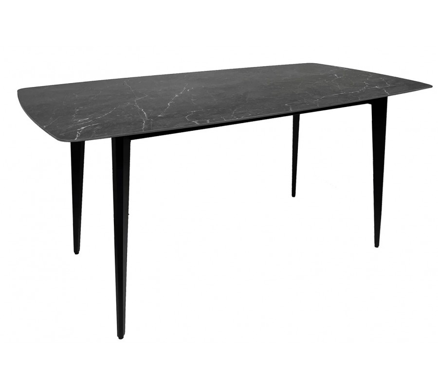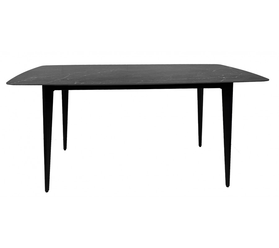 Moderný čierny jedálenský obdĺžnikový stôl Tazer s mramorovým dizajnom s kovovými nožičkami 160 cm