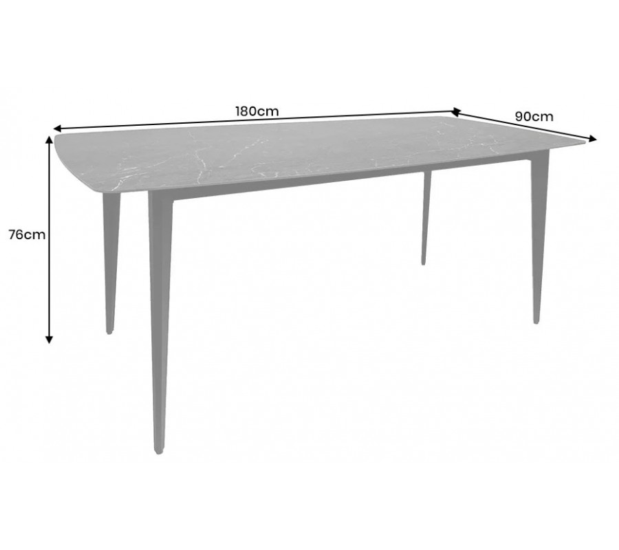 Jedálenský stôl Tazer spája vo svojom dizajne moderný štýl s eleganciou mramoru. Prevedenie v čiernej farbe prináša do priestoru dotyk sofistikovanosti a vrchná doska s dĺžkou 180 cm poskytne stolovacie miesto pre 6 až 8 osôb.