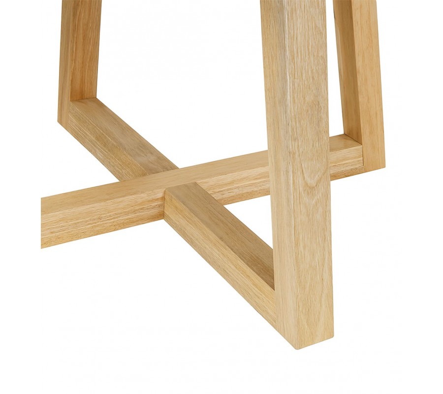 Jedálenský stôl má modernú siluetu s jednoduchou okrúhlou vrchnou doskou, postavenou na štyroch hranatých zošikmených nohách. V spodnej časti sú prepojené krížovou podstavou, ktorá zabezpečuje nábytku výbornú stabilitu. Striktné rovné línie esteticky kontrastujú s okrúhlou vrchnou doskou a dizajn je tak minimalistický, no zároveň vizuálne zaujímavý. Za stôl usadíte šesť až osem osôb, v závislosti od typu stoličiek.