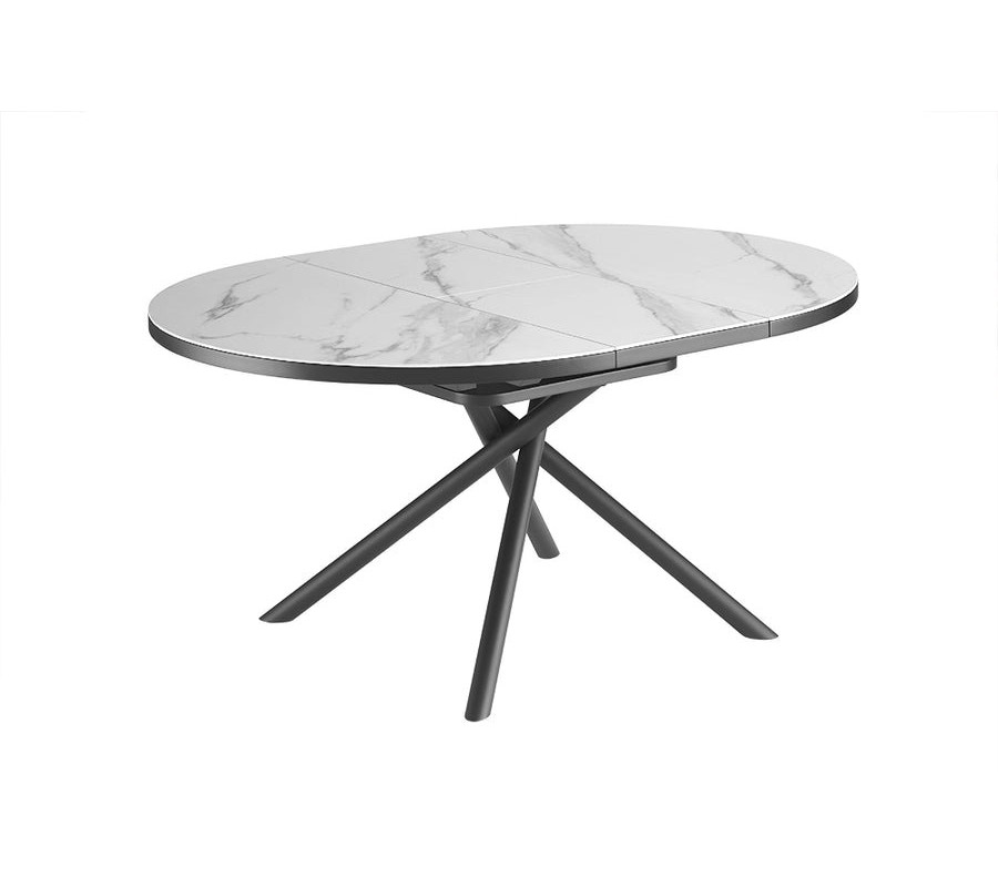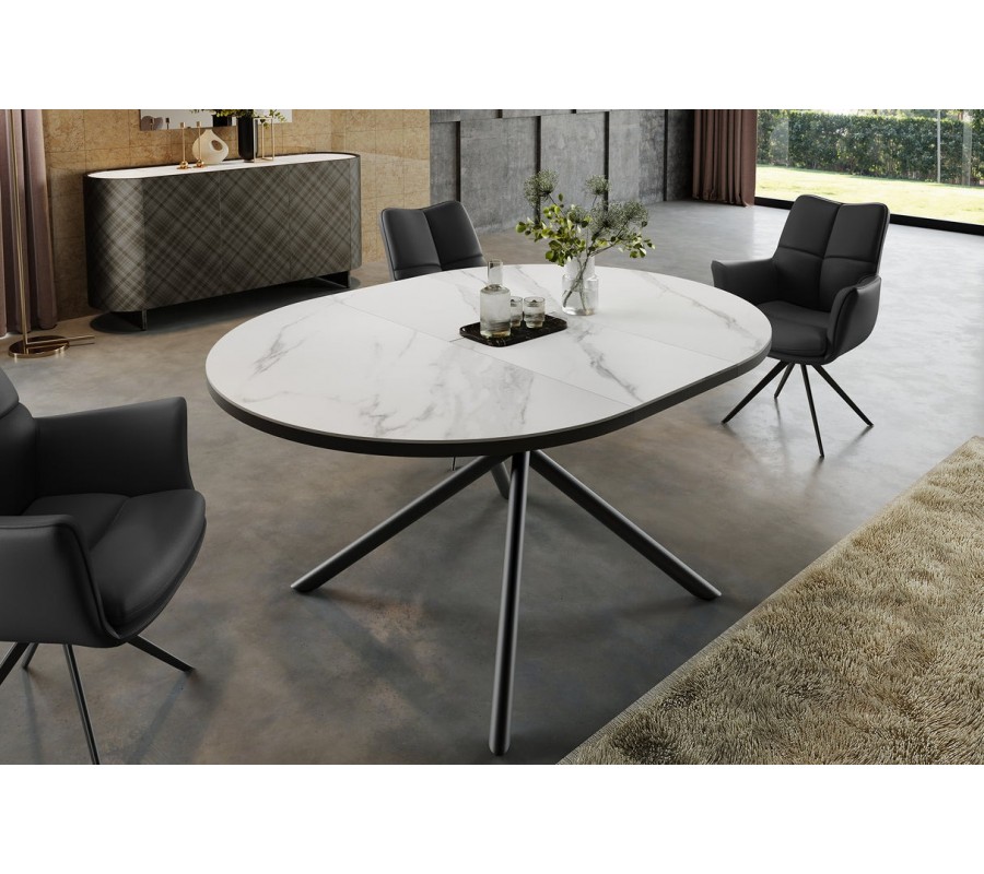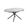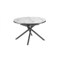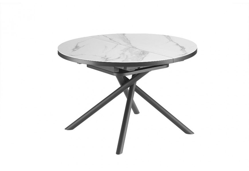 Luxusný mramorový biely okrúhly industriálny rozkladací jedálenský stôl Marbleux s čiernymi kovovými nožičkami 160 cm