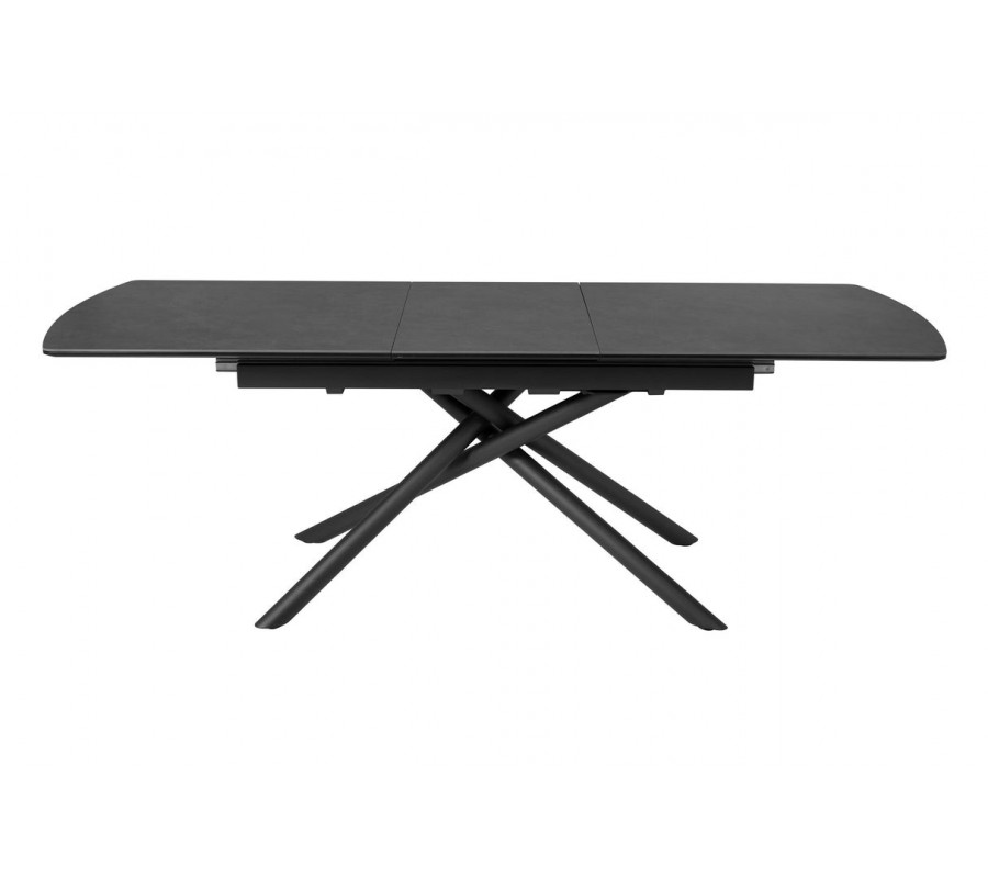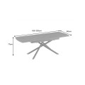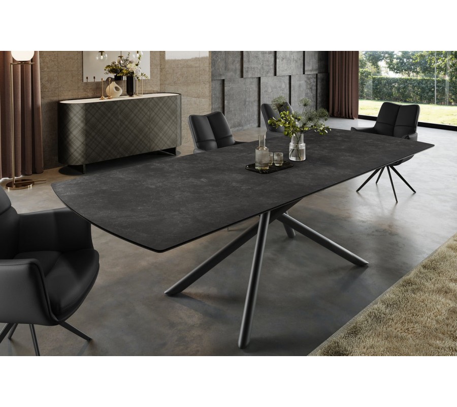 Jedálenský stôl Marbleux je dokonalým spojením súčasného dizajnu, praktickej funkčnosti a výrazného materiálového spracovania. Vrchná doska v obdĺžnikovom tvare je vyrobená z odolnej keramiky s realistickým mramorovým efektom v tmavších odtieňoch, ktorá je nanesená na vrstve bezpečnostného skla. Tento materiál nielen že pôsobí luxusne, ale zároveň zaručuje vysokú odolnosť proti poškriabaniu, teplu aj nárazom. Jemne zaoblené kratšie hrany zjemňujú celkové línie stola a zvyšujú komfort aj bezpečnosť pri používaní.