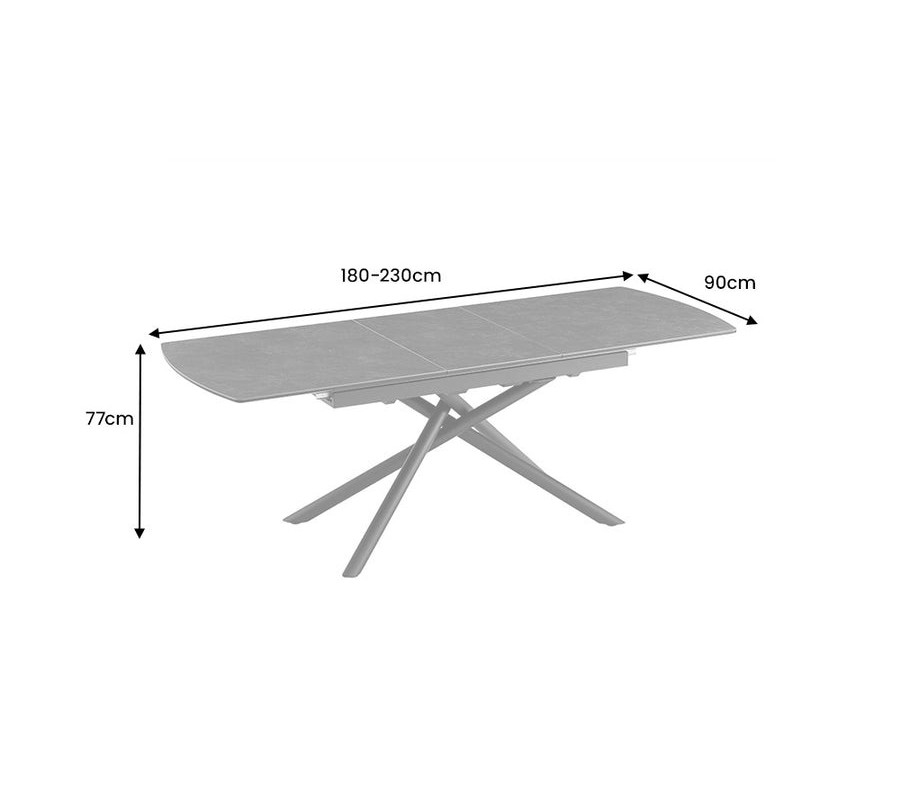 Mechanizmus rozkladania je skrytý pod doskou – ide o praktický synchronizovaný systém, vďaka ktorému stačí potiahnuť jednu stranu a druhá sa automaticky rozšíri. Vkladacia časť je uložená v strede a umožňuje rýchle a jednoduché predĺženie dosky zo 180 cm na až 230 cm. V základnej veľkosti pohodlne usadí 6 až 8 osôb, po rozložení poskytne priestor pre 8 až 10 hostí.