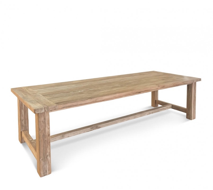 Luxusný vidiecky vintage obdĺžnikový jedálenský stôl Pagano z masívneho teakového dreva v svetlej hnedej farbe 300 cm