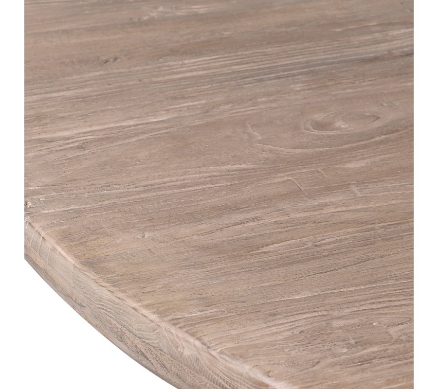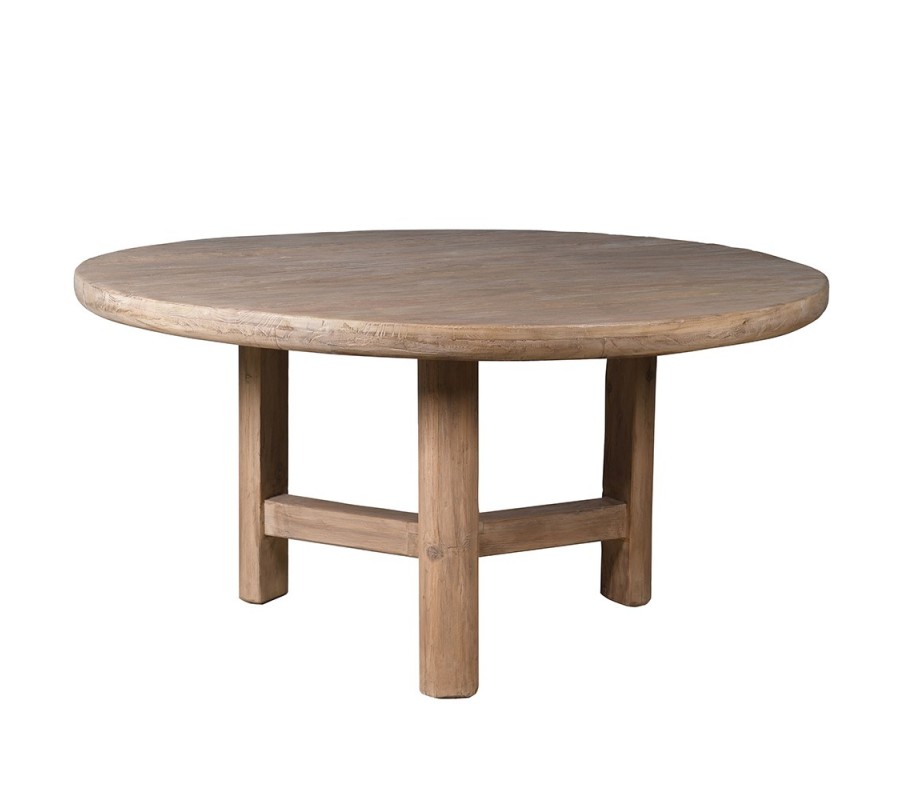Luxusný vidiecky okrúhly jedálenský stôl Nandor z recyklovaného bledohnedého brestového dreva s tromi nožičkami 153 cm