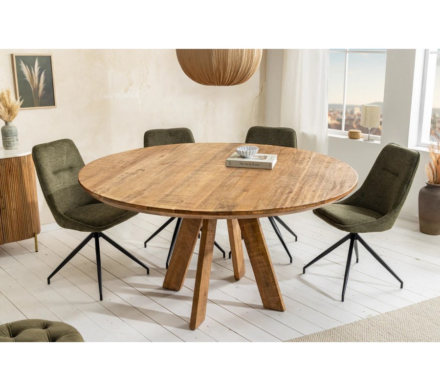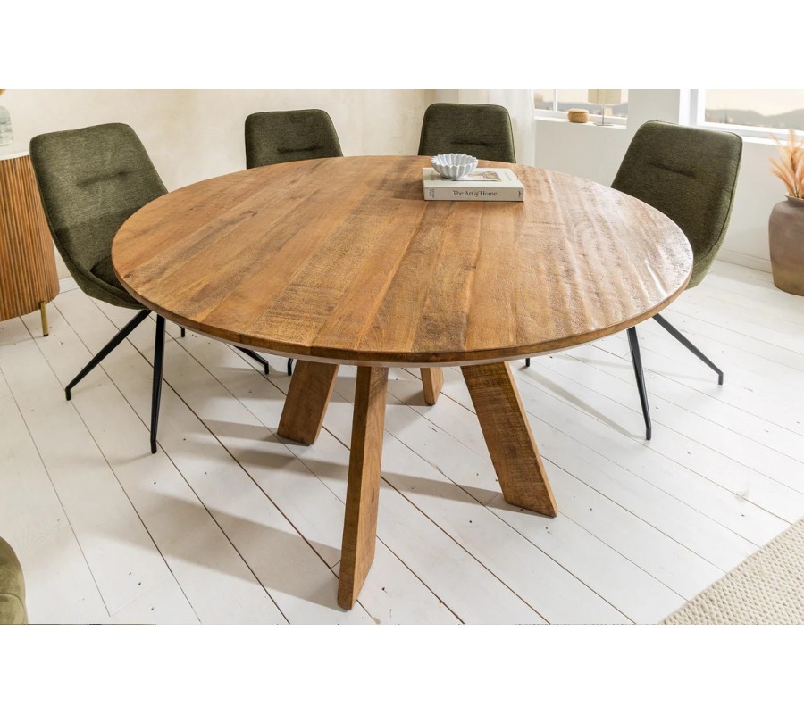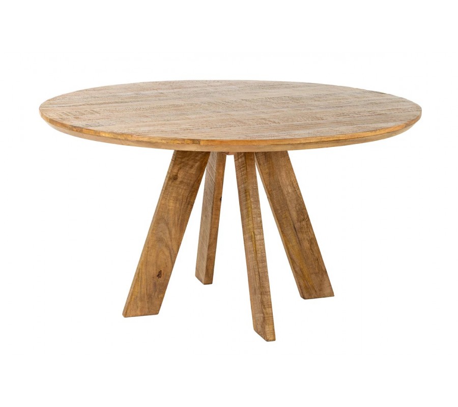 Masívny krúhly jedálenský stôl Arlo z mangového dreva s vyosenými nožičkami v hnedej farbe 140 cm