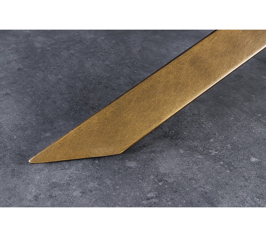 Stôl stojí na štyroch kovových nohách v bronzovej farbe, ktoré sú originálne prekrížené v centrálnej časti. Táto sochárska konštrukcia pôsobí dynamicky a pritom zabezpečuje maximálnu stabilitu. Kovové nohy vytvárajú kontrast k mramorovému dekoru a spolu podčiarkujú glamour štýl celého stola.