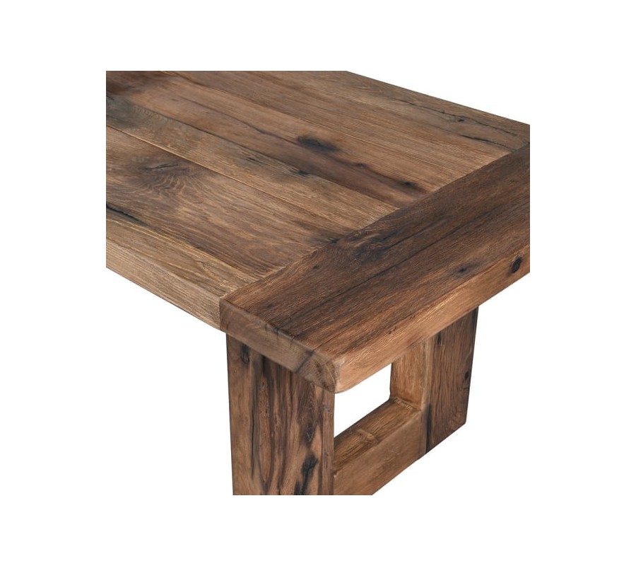 Luxusný vidiecky obdĺžnikový hnedý jedálenský stôl Roble z masívneho dubového dreva s mohutnými štvorcovými nožičkami 219 cm