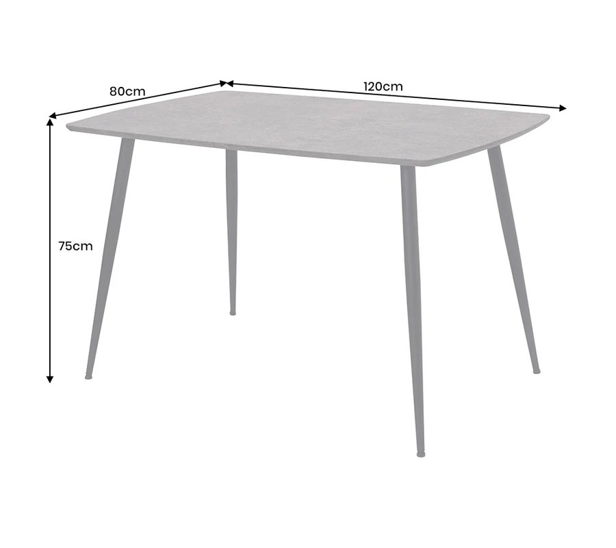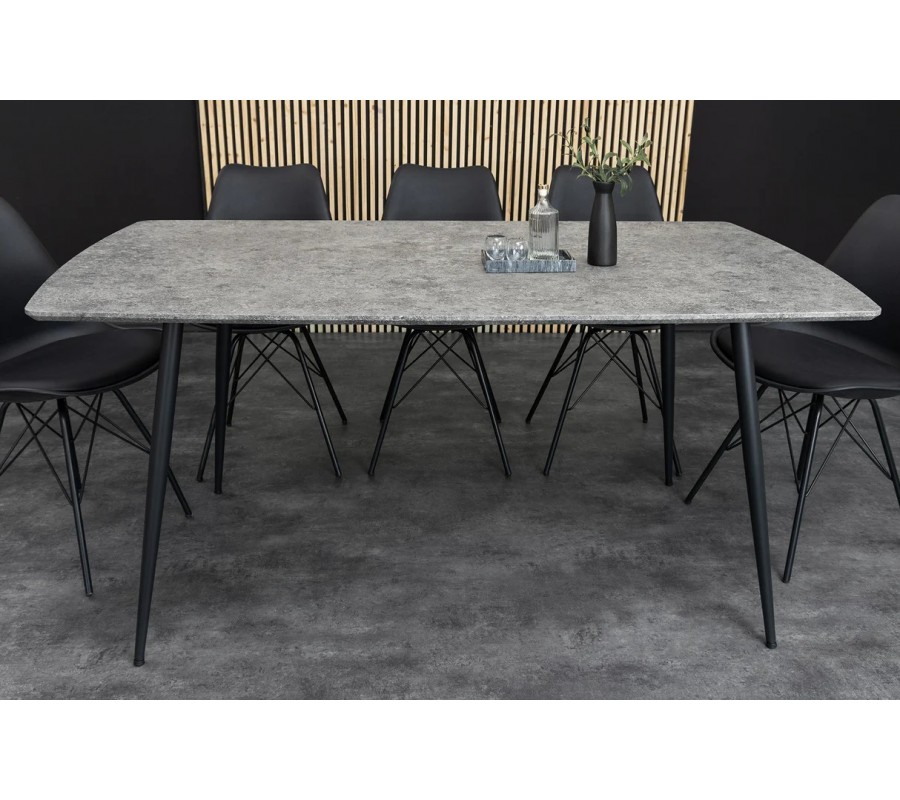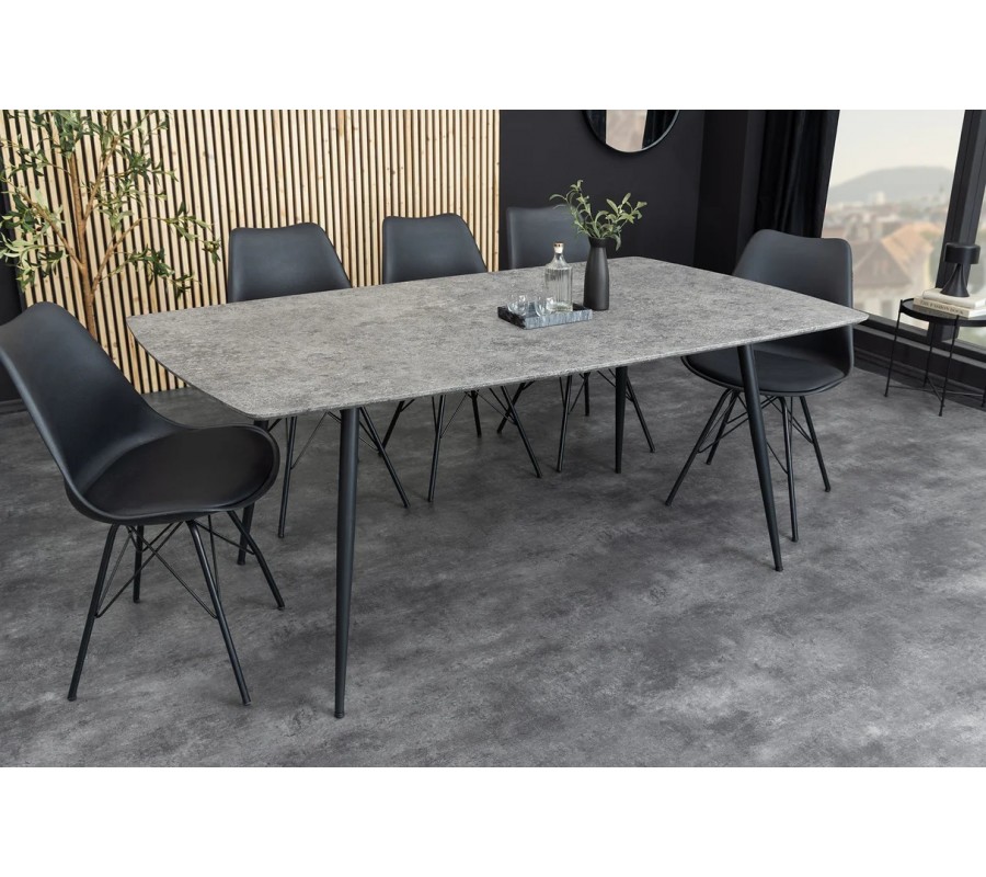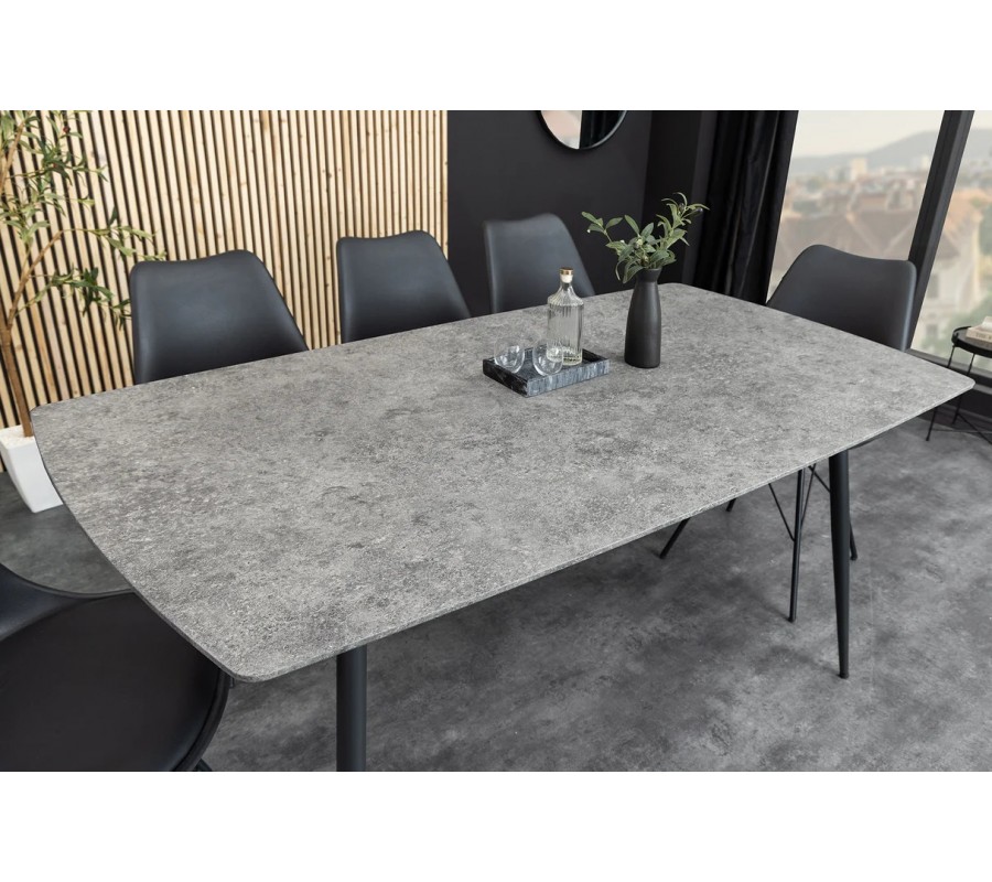 Moderný industriálny obdĺžnikový jedálenský stôl Maison je štýlovým a funkčným riešením pre súčasné interiéry s dôrazom na čistý dizajn a nadčasové materiály. Jeho jednoduchá silueta, oblé rohy a kontrast medzi sivou doskou a čiernou kovovou podnožou vytvárajú elegantný, moderne pôsobiaci celok s jemným industriálnym charakterom.