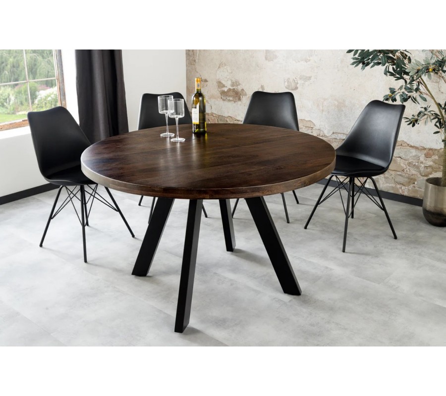 Industriálny masívny okrúhly jedálenský stôl Ivar s kovovými čiernymi nožičkami a mangovou doskou 120 cm