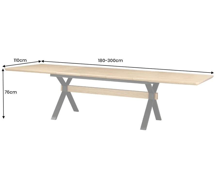 Stôl Gerant je rozkladací v rozsahu od 180 cm až do 300 cm a umožňuje pohodlné používanie v niekoľkých dĺžkach. V základnom stave s dĺžkou 180 cm poskytuje komfortné stolovanie pre 6 osôb. Po rozložení na 220 cm alebo 260 cm ponúka dostatok priestoru pre väčšie rodinné stretnutia či návštevy. V maximálnom rozmere 300 cm umožňuje reprezentatívne stolovanie až pre 12 osôb. Vďaka tejto variabilite je vhodný na každodenné používanie aj na oslavy, sviatky či spoločenské udalosti.