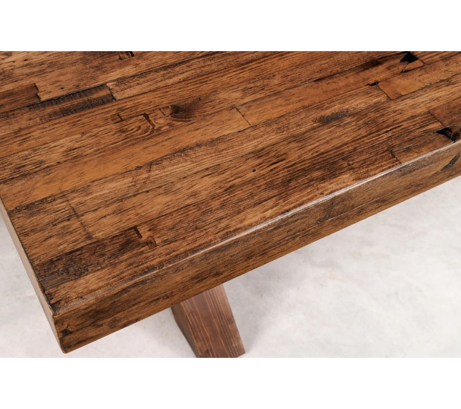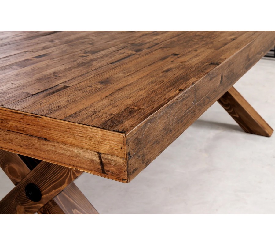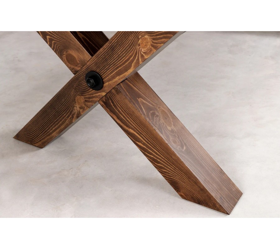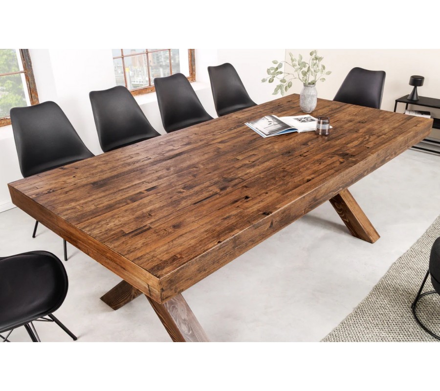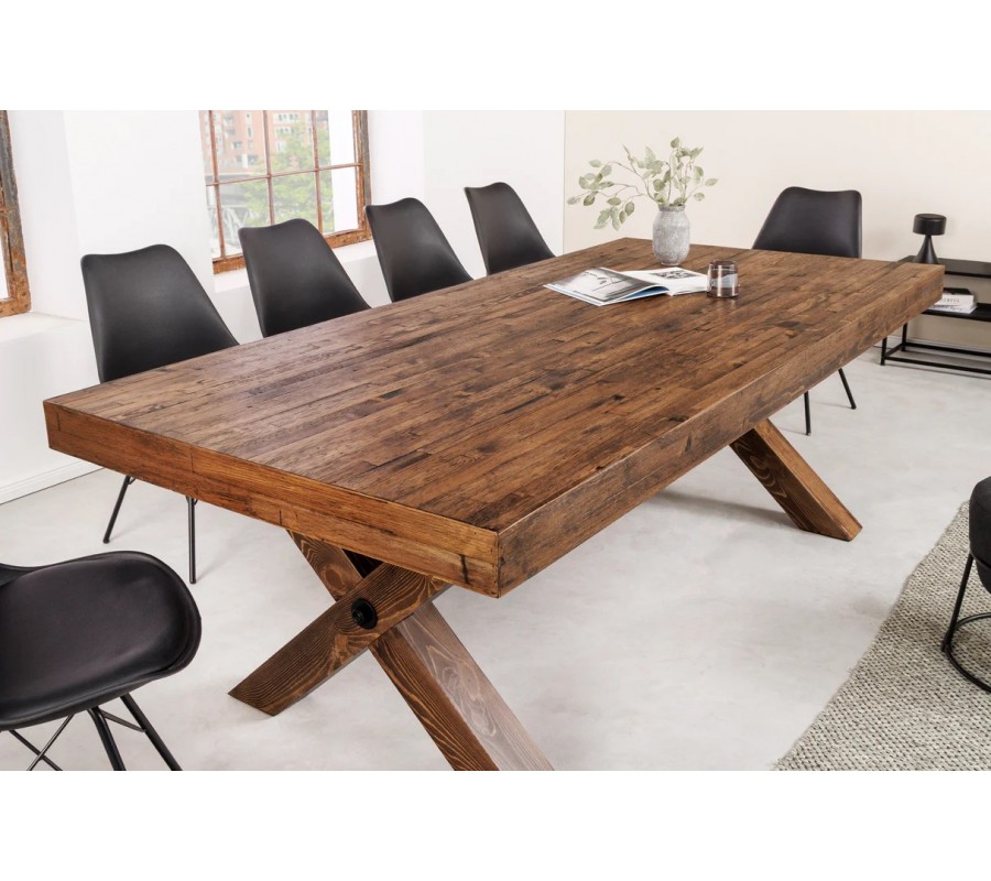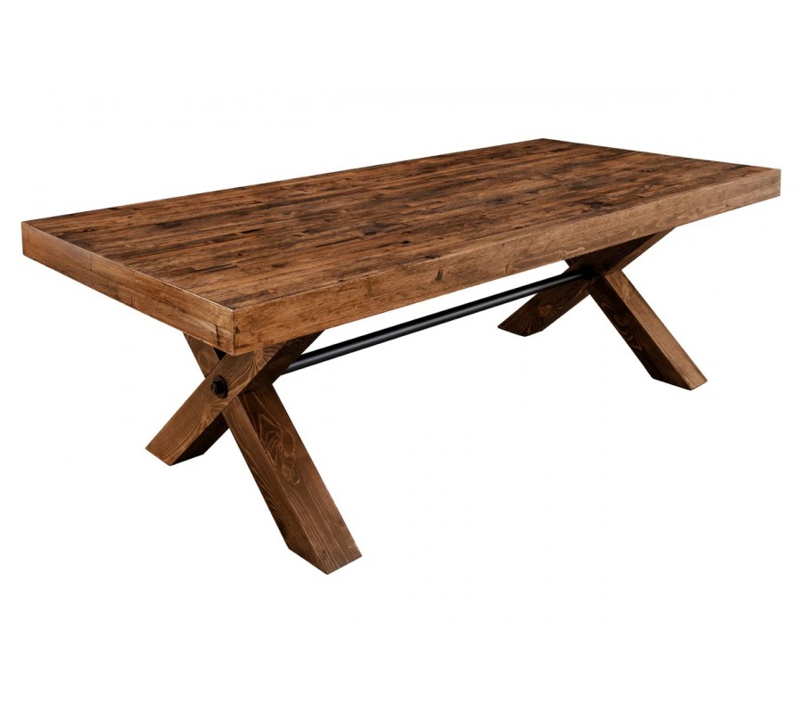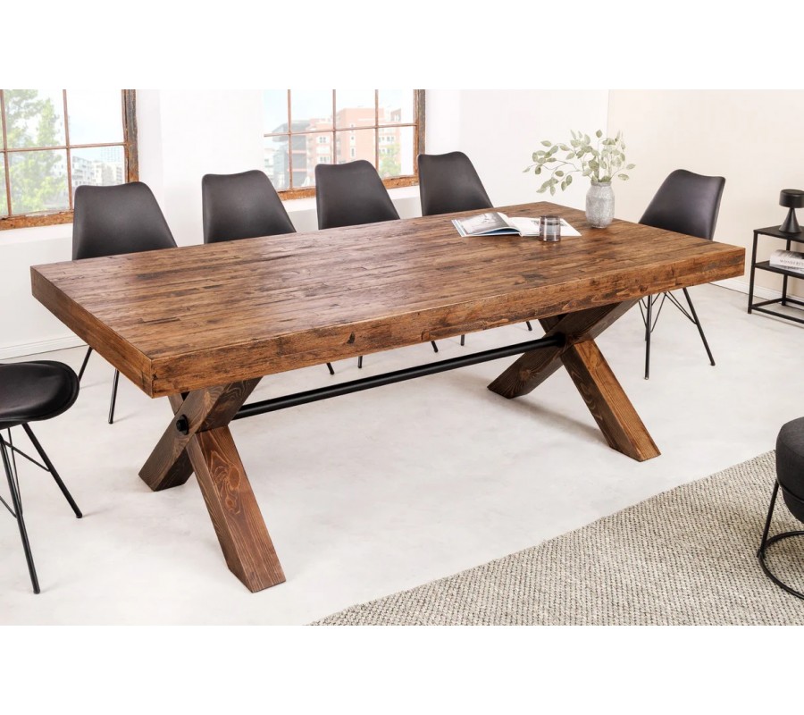 Vidiecky vintage obdĺžnikový jedálenský stôl Sawyer s prekríženými nohami v rustikálnom tmavom hnedom prevedení 210 cm