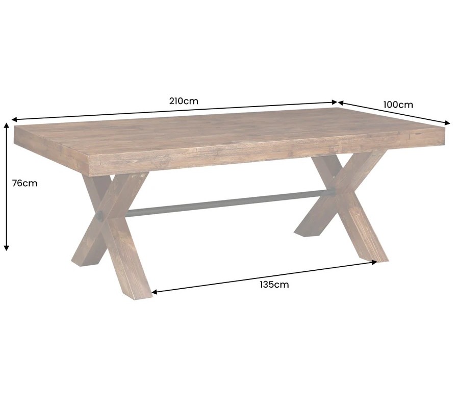 Stôl má obdĺžnikovú vrchnú dosku, ktorá pôsobí mohutným dojmom a s dĺžkou 210 cm poskytne miesto pre 6 až 8 osôb. Je položená na dvoch nohách v tvare X. Sú tvorené dvomi prekríženými hranolmi a ich stredy navzájom prepája lineárna valcovitá výstuha.