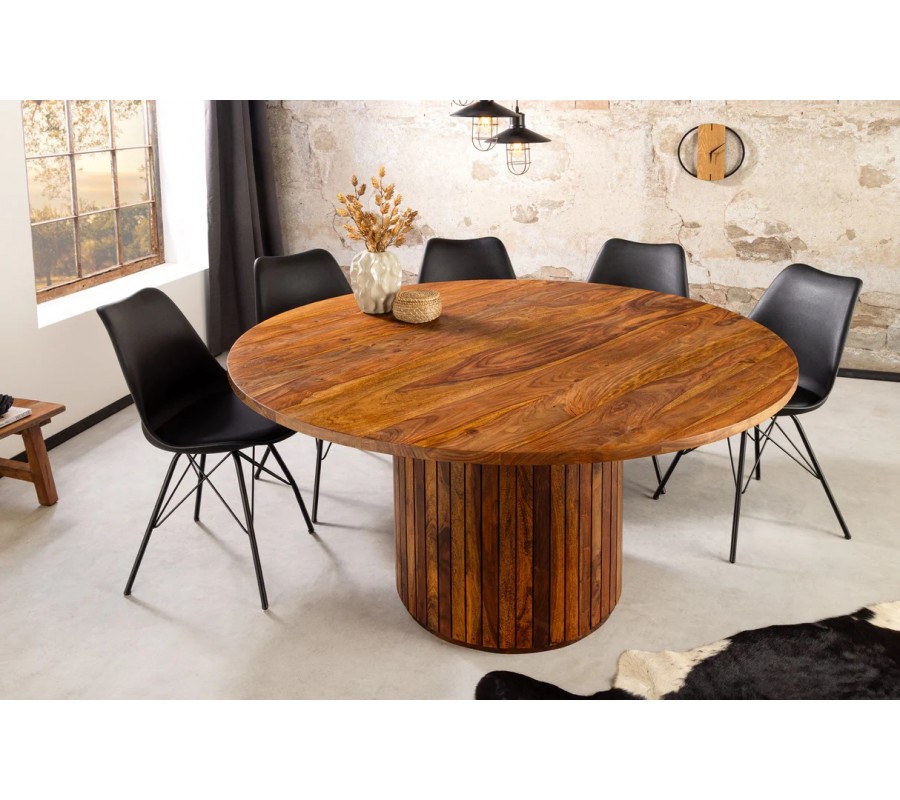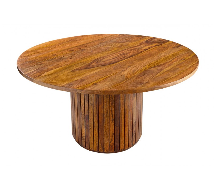 Art deco okrúhly masívny hnedý jedálenský stôl Gire zo sheeshamového dreva s valcovou nohou 120 cm