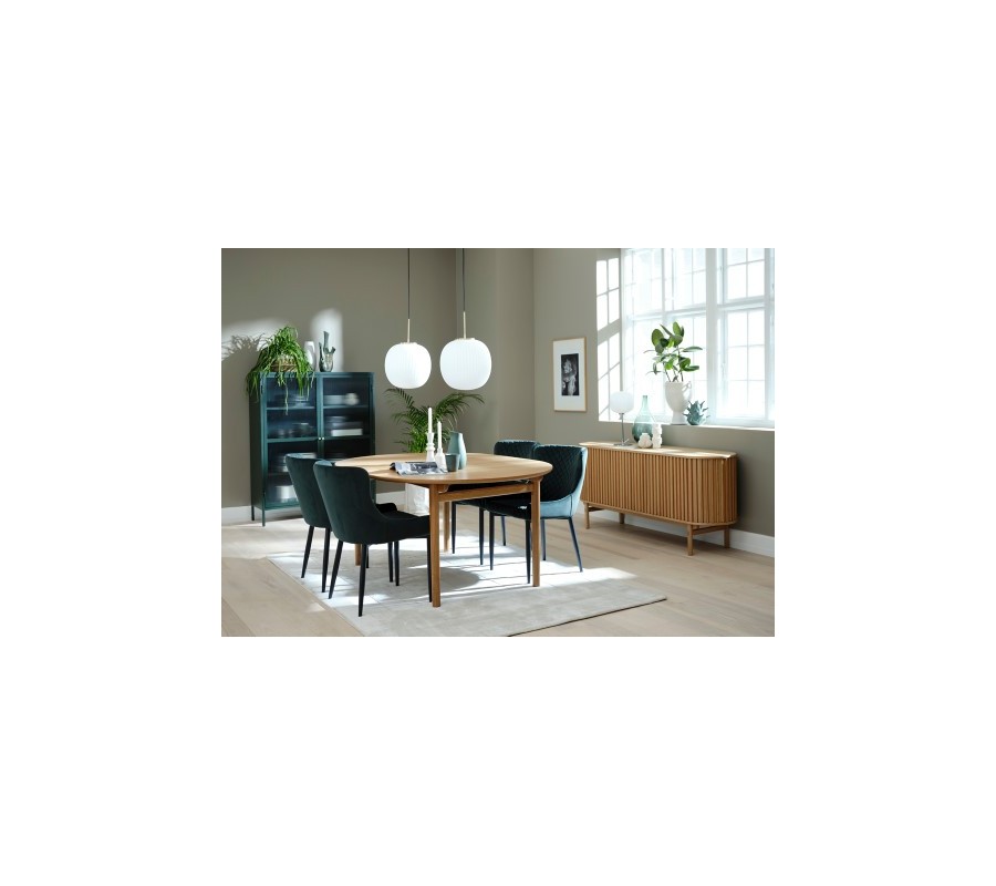 Jedálenský stôl Roskilde vynikne ako stredobod priestorov zariadených v škandinávskom štýle. Môžete ho skombinovať s úložnými priestormi zo svetlého masívneho dreva, kobercom z prírodného vlákna či stredovou dekoráciou v podobe živej zelenej rastliny. Retro estetiku zasa zvýraznia farebné stoličky so zamatovým poťahom, ktoré prinesú do jedálne štýlový akcent. Skvelou voľbou sú aj ďalšie elegantné modely z rovnakej kolekcie Roskilde.