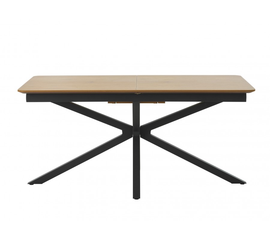 Industriálny rozkladací jedálenský stôl Holstebro s obdĺžnikovou doskou v dubovej hnedej farbe s čiernymi nohami 160-200 cm