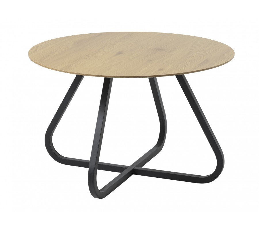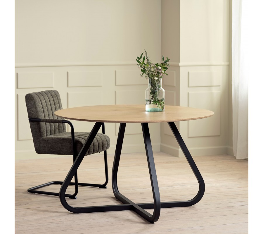 Dizajnový industriálny okrúhly jedálenský stôl Holstebro s dubovo hnedou doskou a čiernou kovovou podstavou 120 cm