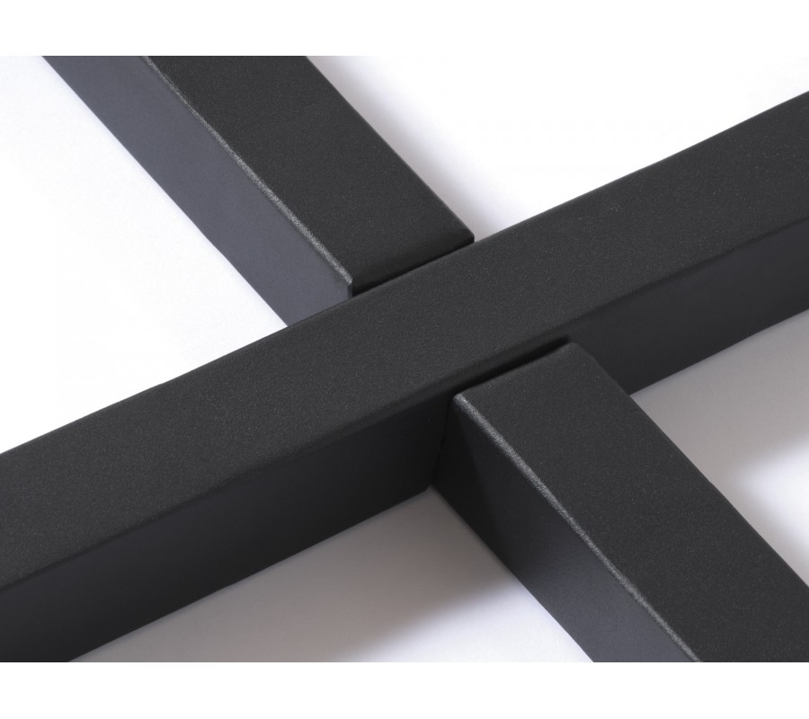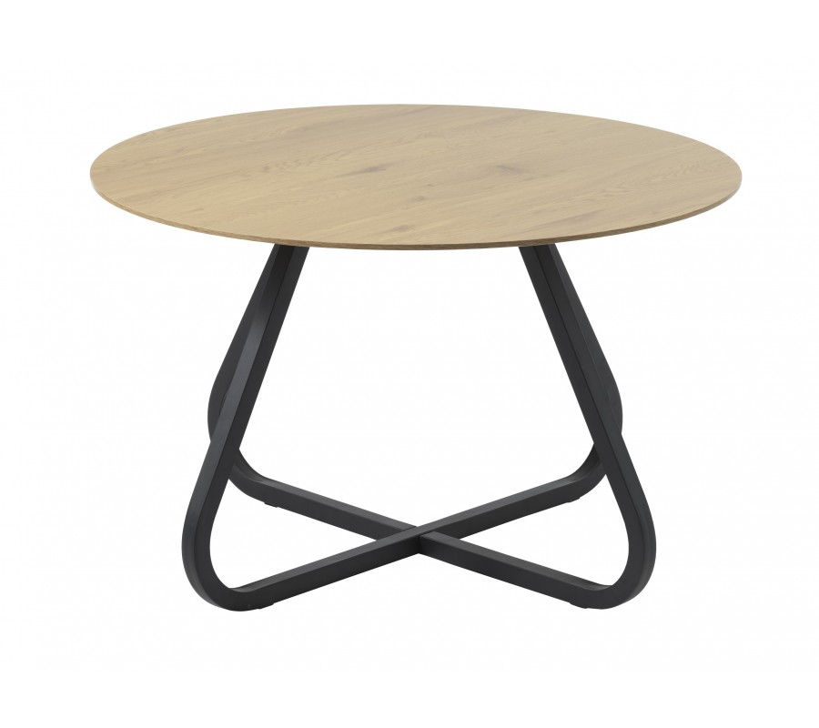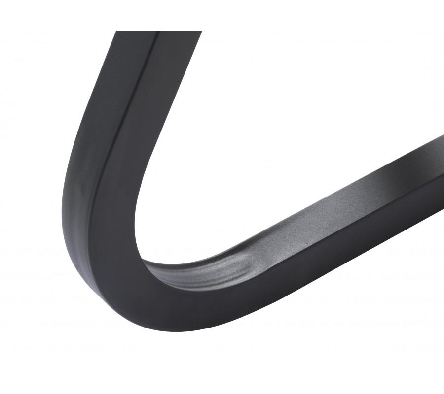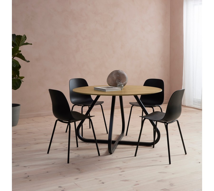S teplým vizuálom dreva kontrastuje podstava z kovu v matnom čiernom prevedení. Tvoria ju štyri nohy s hranatým profilom. Vo vrchnej časti je ich línia zošikmená a dole prechádza vo výraznej krivke do výstuhy v tvare X, zabezpečujúcej výbornú stabilitu.