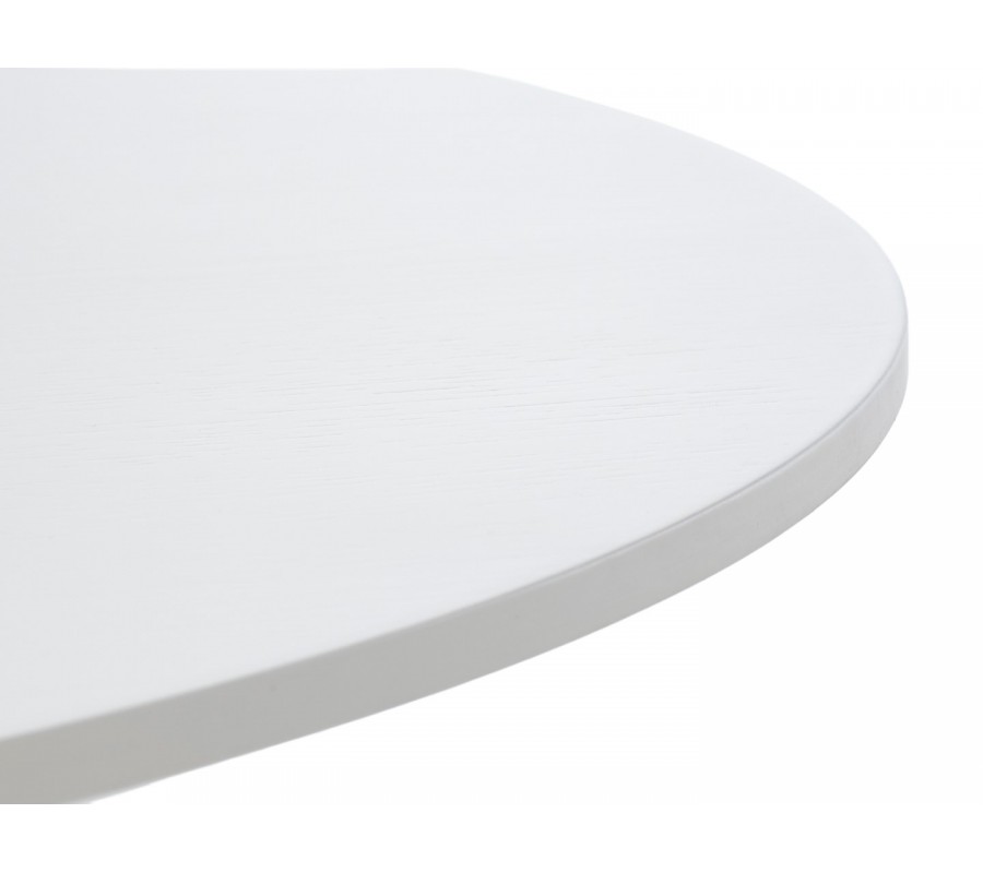 Stôl je vyrobený z kombinácie kvalitnej dubovej dyhy a MDF. Povrchová úprava v bielej farbe pôsobí moderne a minimalisticky, pričom necháva zachovaný jemnú štruktúru letokruhov dreva. Tá dodáva nábytku subtílnu textúru a zároveň prírodný akcent.