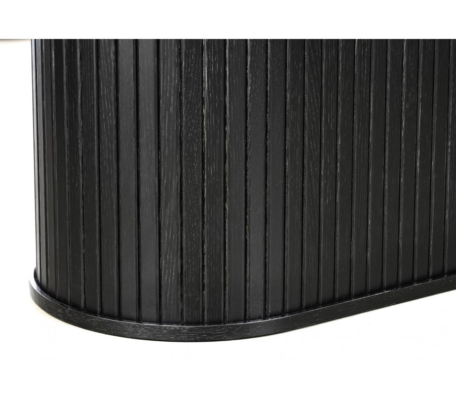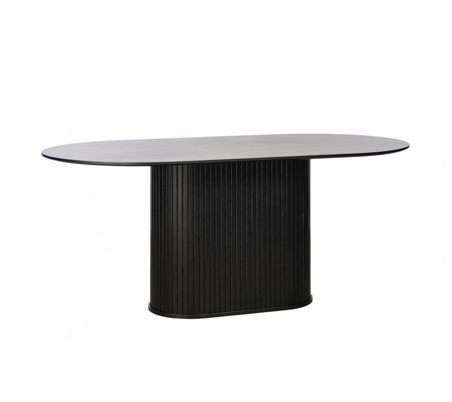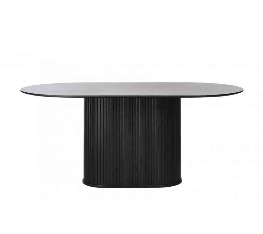 Moderný čierny jedálenský stôl Bornholm s hladkou oválnou doskou a mohutnou nohou s lamelovým dizajnom 180 cm