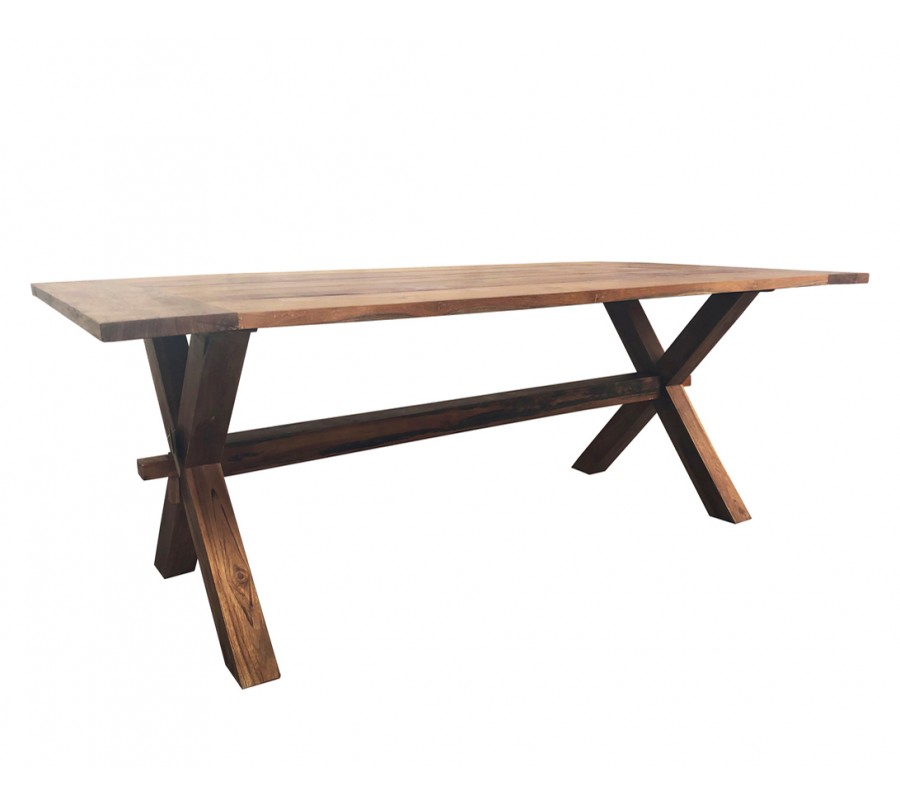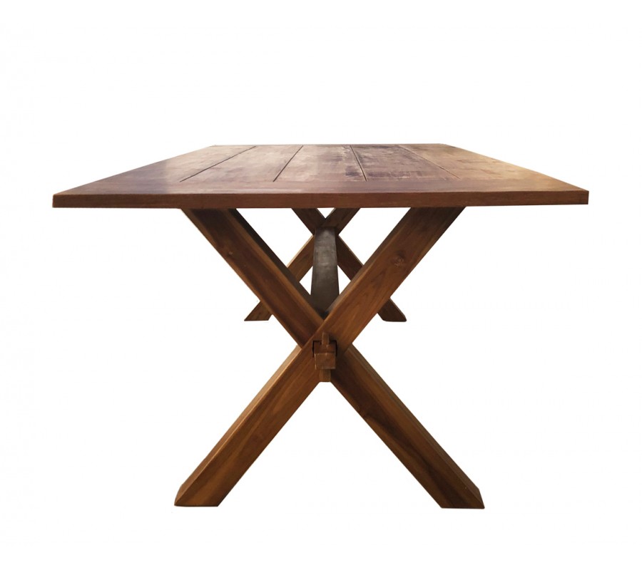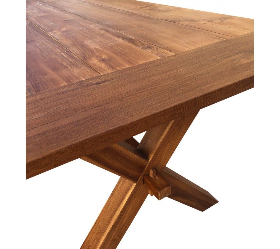 Ručne vyrábaný jedálenský stôl Camile v koloniálnom štýle z masívneho teakového dreva a prekríženými nožičkami 200cm