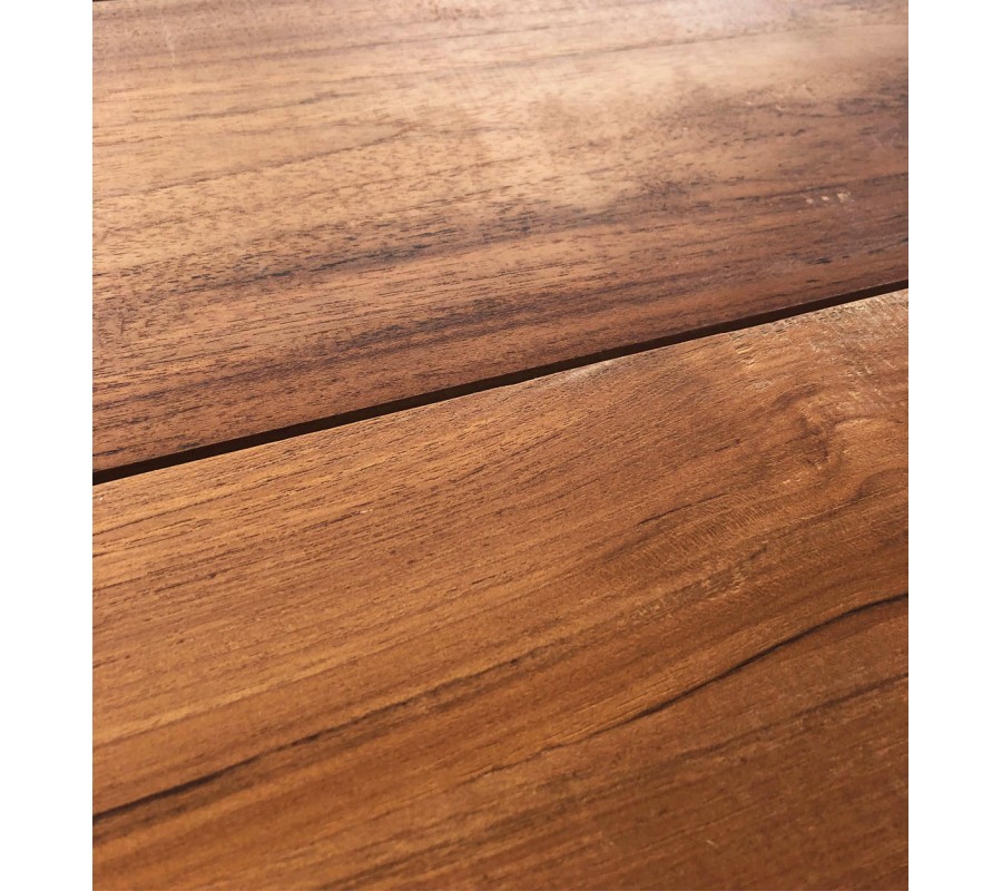 Teakové drevo nesúce exotickú cestovateľskú atmosféru použité pri ručnej výrobe jedálenského stola Camile zaručuje kvalitné a pevné vyhotovenie, s ktorým budete spokojní nie len po estetickej stránke. Prirodzená kresba a štruktúra dreva s výrazným škoricovým podtónom vynikne v kombinácii s čalúnením nábytku v jemnej ľanovej farbe. Stôl obdĺžnikového tvaru sa výborne hodí do priestranných jedální zariadených v koloniálnom štýle s masívnou komodou a husto vypletanými ratanovými stoličkami či kreslami. Vrchná doska stola je položená na masívnych prekrížených nohách vzájomne pozdĺžne spojených dizajnovým dreveným trámom pretŕčajúcim po bokoch v mieste prekríženia. Stôl si svoje miesto nájde aj v obklopení regálov či skriniek s čiernymi masívnymi kovovými detailmi. Okrem vás a vašich najbližších zaň pohodlne usadíte aj hostí pri chutnej večeri.