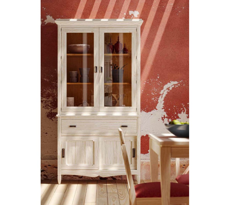 Luxusná vitrína Amberes je jedinečným prepojením moderného vzhľadu s nádychom rustikálneho či vidieckeho štýlu. Tento exkluzívny kúsok z kolekcie inšpirovanej belgickým mestečkom Antverpy je vyrobený z kvalitného masívneho dreva od dodávateľa s certifikátom obnovy lesného porastu, vďaka čomu je výbornou ekologickou a udržateľnou voľbou. Dominantou dizajnu vitríny sú čisté minimalistické línie, ktoré dopĺňa precízne ručné vyrezávanie zjemňujúce celkový vzhľad. Okrem kvalitného spracovania a inovatívneho dizajnu vitrína ponúka bohatý úložný priestor na všetky vaše dekorácie, knihy či iné predmety. Poličky vo vrchnej časti chránia sklenené dvierka, pod nimi sa nachádzajú dve praktické zásuvky a v spodnej časti zasa nájdete praktický úložný priestor s posuvnými dvierkami. Ponúkame možnosť voľby farebného prevdenia, ktoré si môžete prezrieť v priloženom vzorkovníku. Vitrína Amberes zapadne do obývačiek ladených vo vidieckom, klasickom, ale i modernejšom štýle.