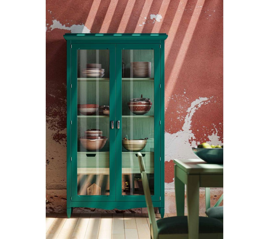 Klasická luxusná vitrína Amberes z masívu s poličkami, zásuvkami a sklenenými dvierkami 200cm