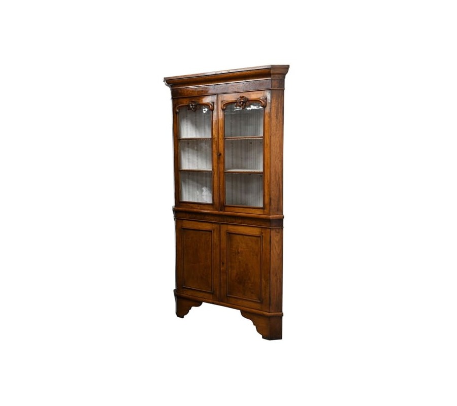 Luxusná klasická rohová vitrína Adalia z masívneho dreva so sklenenými dvierkami 206cm
