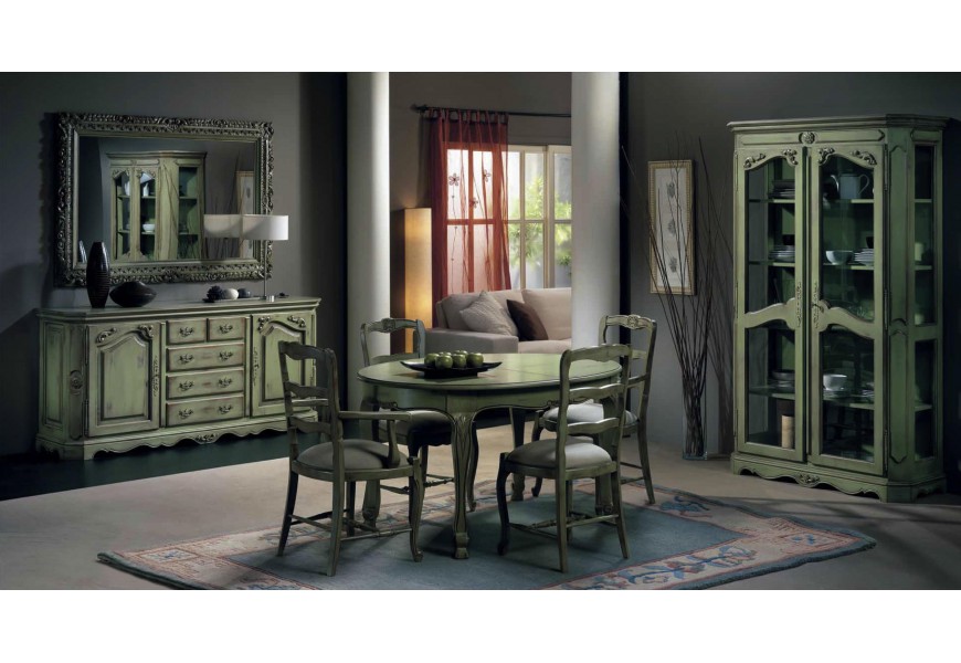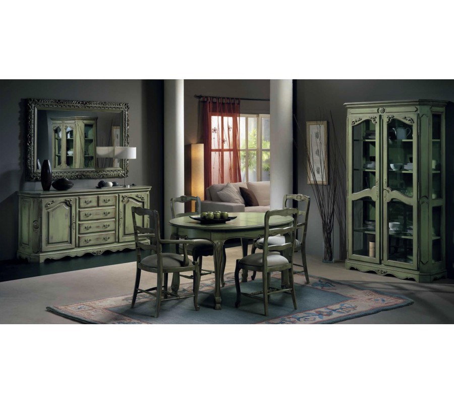 Luxusná jedálenská zostava Selleccion 2 predstavuje jedinečné kúsky nábytku, ktoré vyniknú v každom klasicky či rustikálne ladenom interiéri. Ak túžite po skutočne unikátnom jedálenskom zariadení, ste na správnom mieste! Jedálenská zostava vám ponúka jedálenský stôl, stoličky, vitrínu i príborník nesúce sa v jedinečnom rustikálnom či vintage štýle. Kvalitný materiál sa snúbi s eleganciou, luxusným prevedením a bohatým ornamentálnym zdobením. Vzniká tak jedinečná zostava, ktorá zjednotí každý priestor a vnesie k vám domov historický nádych luxusných víl!