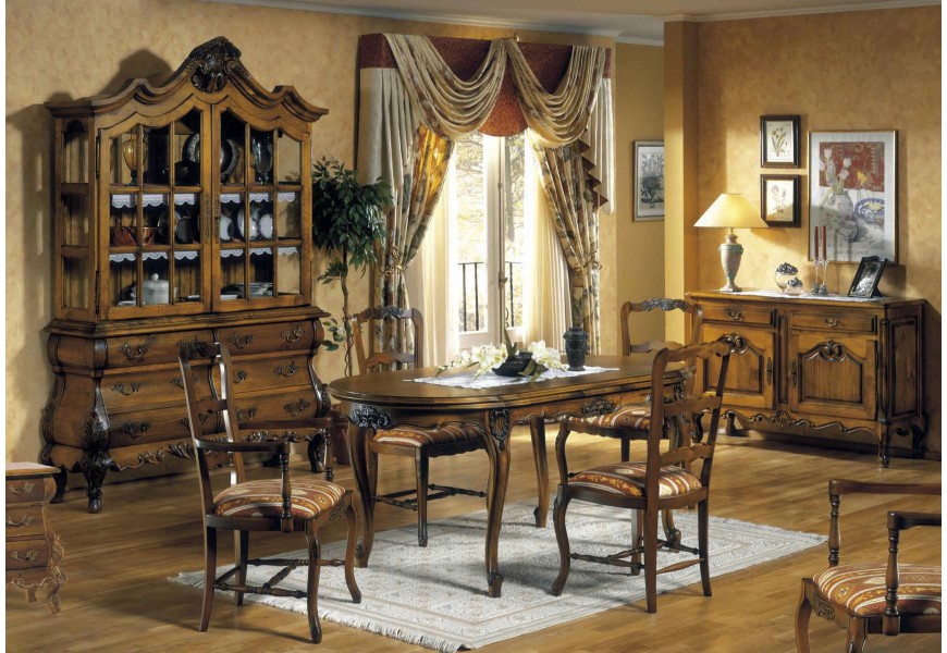 Exkluzívna jedálenská zostava Selleccion 3 prináša jedinečné kúsky nábytku, ktoré vyniknú v každom klasicky či rustikálne ladenom interiéri. Ak túžite po skutočne unikátnom jedálenskom zariadení, ste na správnom mieste! Jedálenská zostava predstavuje jedálenský stôl, stoličky, i príborník, ktoré sa nesú v jedinečnom rustikálnom či vintage štýle. Kvalitný materiál sa snúbi s eleganciou, luxusným prevedením a bohatým ornamentálnym zdobením. Vzniká tak jedinečná zostava, ktorá zjednotí každý priestor a vnesie k vám domov historický nádych luxusných víl!
