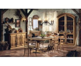 Rustikálna luxusná jedálenská zostava Selleccion 6 z dreva s ornamentálnymi prvkami