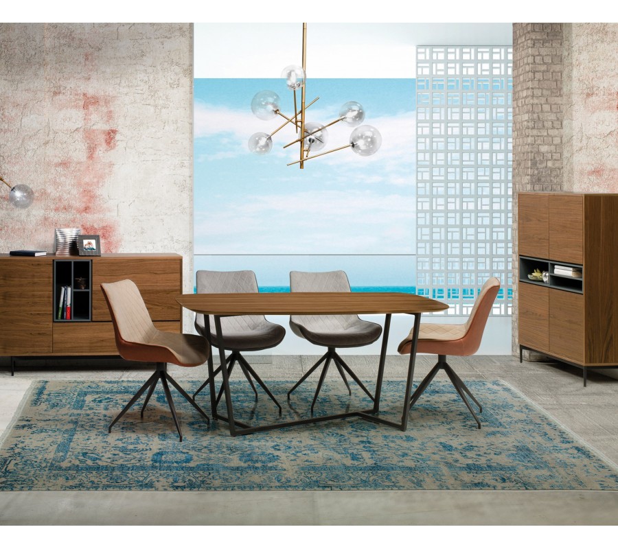 Jedálenská zostava Vidar dodá vašej jedálni moderný škandinávsky štýl. Orechové drevo pôsobí luxusným dojmom a kombinácia zemitých prírodných farieb má nadčasový charakter.
