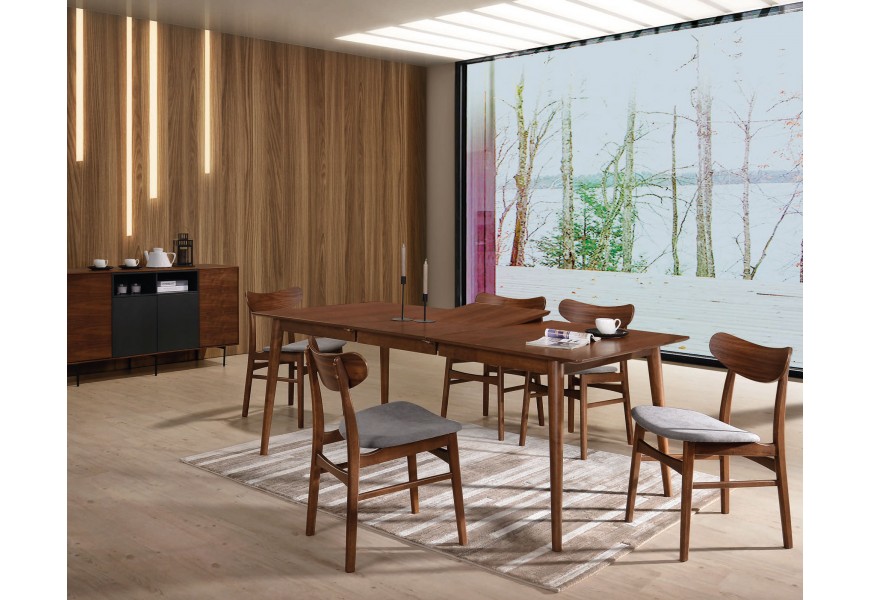 Moderná škandinávska jedálenská zostava Nordica Nogal z orechového dreva