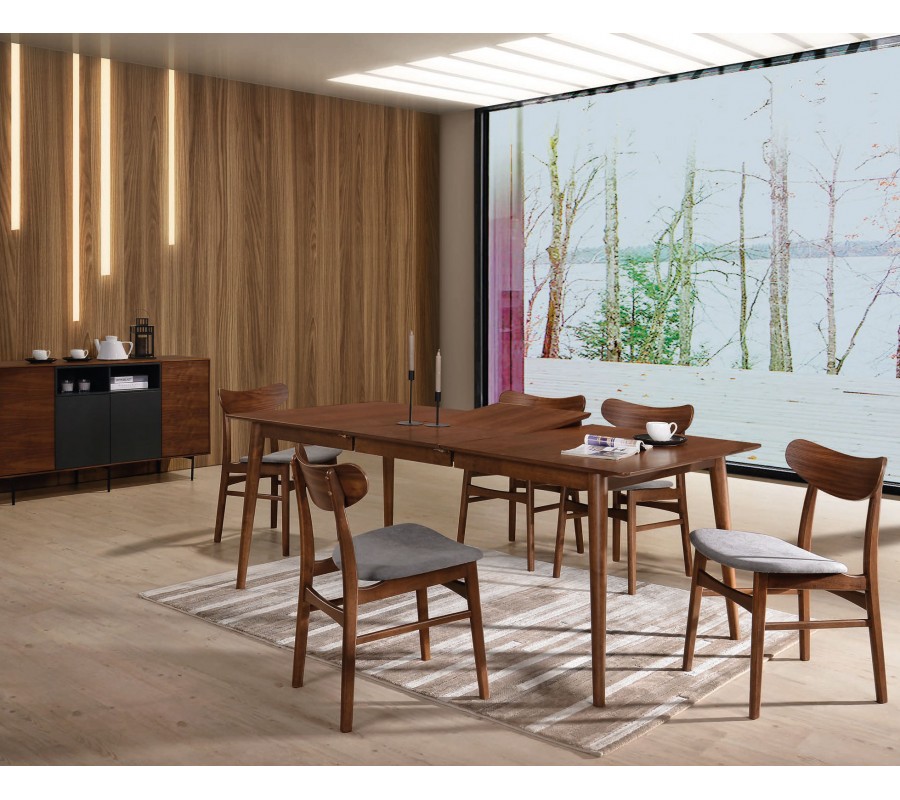 Jedálenská zostava Nordica Nogal vás očarí krásou orechového dreva a moderným škandinávskym dizajnom. Vaša jedáleň sa tak zmení na harmonické miesto, kde sa zídu všetci priatelia či rodina.