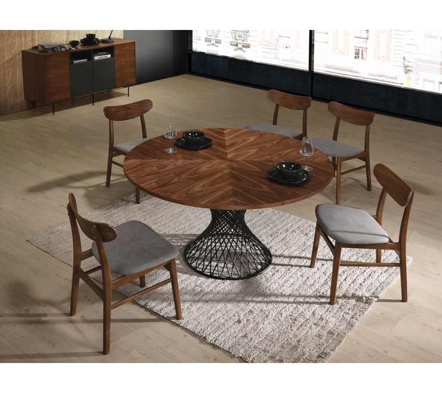 Škandinávska moderná jedálenská zostava Nordica Nogal v hnedej orechovej farbe