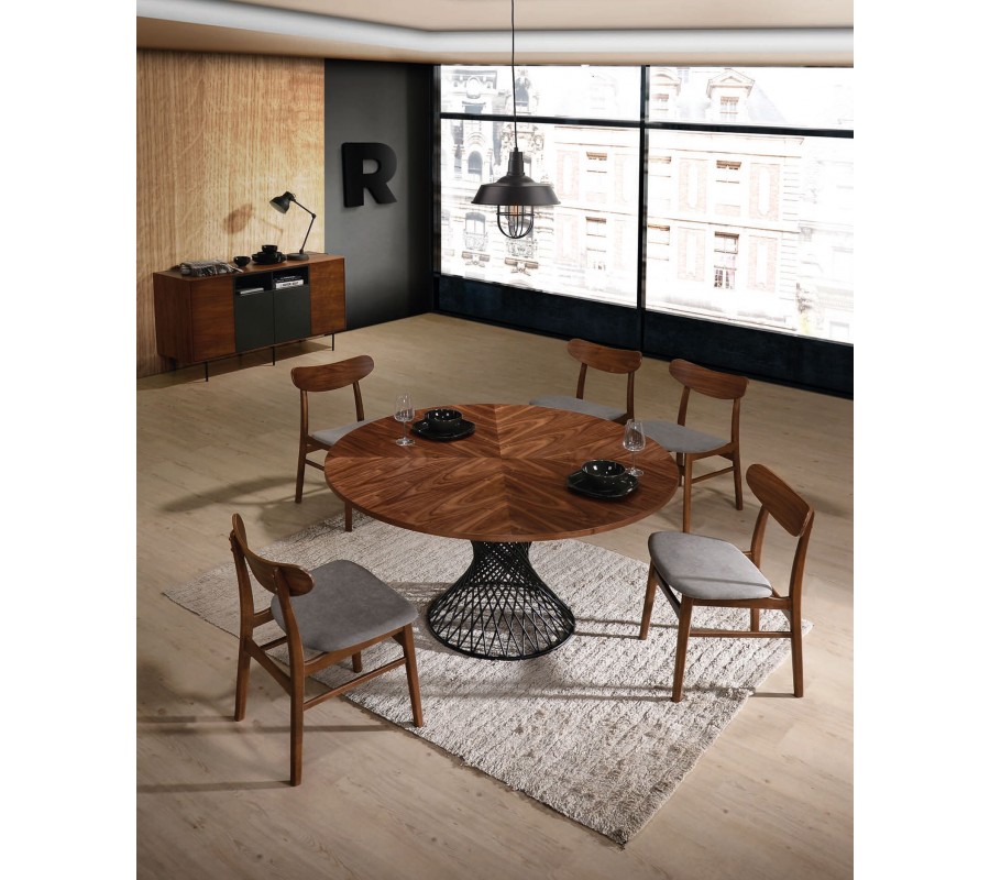 Jedálenská zostava Nordica Nogal vás očarí exkluzívnym vzhľadom orechové dreva so sofistikovanými čiernymi akcentami. Do vašej domácnosti vnesie harmonickú estetiku škandinávskeho štýlu.