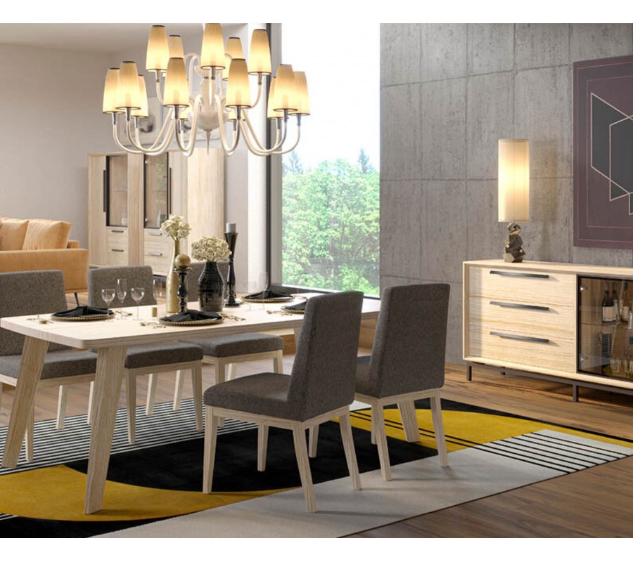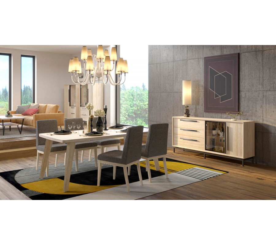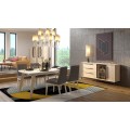 Nábytok zo zostavy Rodas vás očarí čistým lineárnym dizajnom s dominanciou jednoduchých rovných tvarov. Jedálenský stôl bude stredobodom vašej domácnosti, zatiaľ čo čalúnené stoličky zaručia pohodlné sedenie. Oceníte aj praktický úložný priestor, ktorý vám poskytne príborník a vitrína.